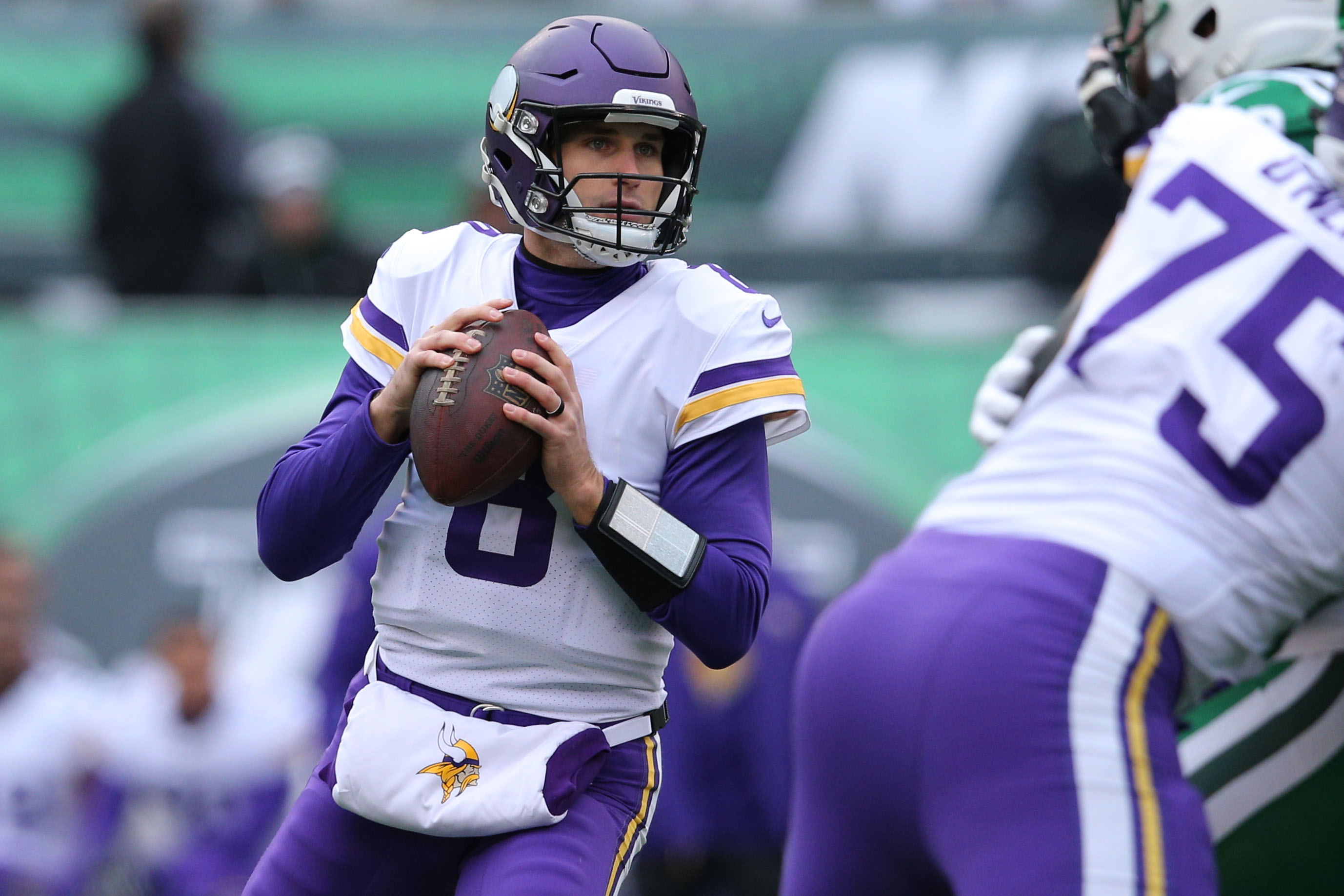 Minnesota Vikings quarterback Kirk Cousins drops back to pass against the New York Jets during the first quarter at MetLife Stadium. / Brad Penner/USA TODAY Sports
