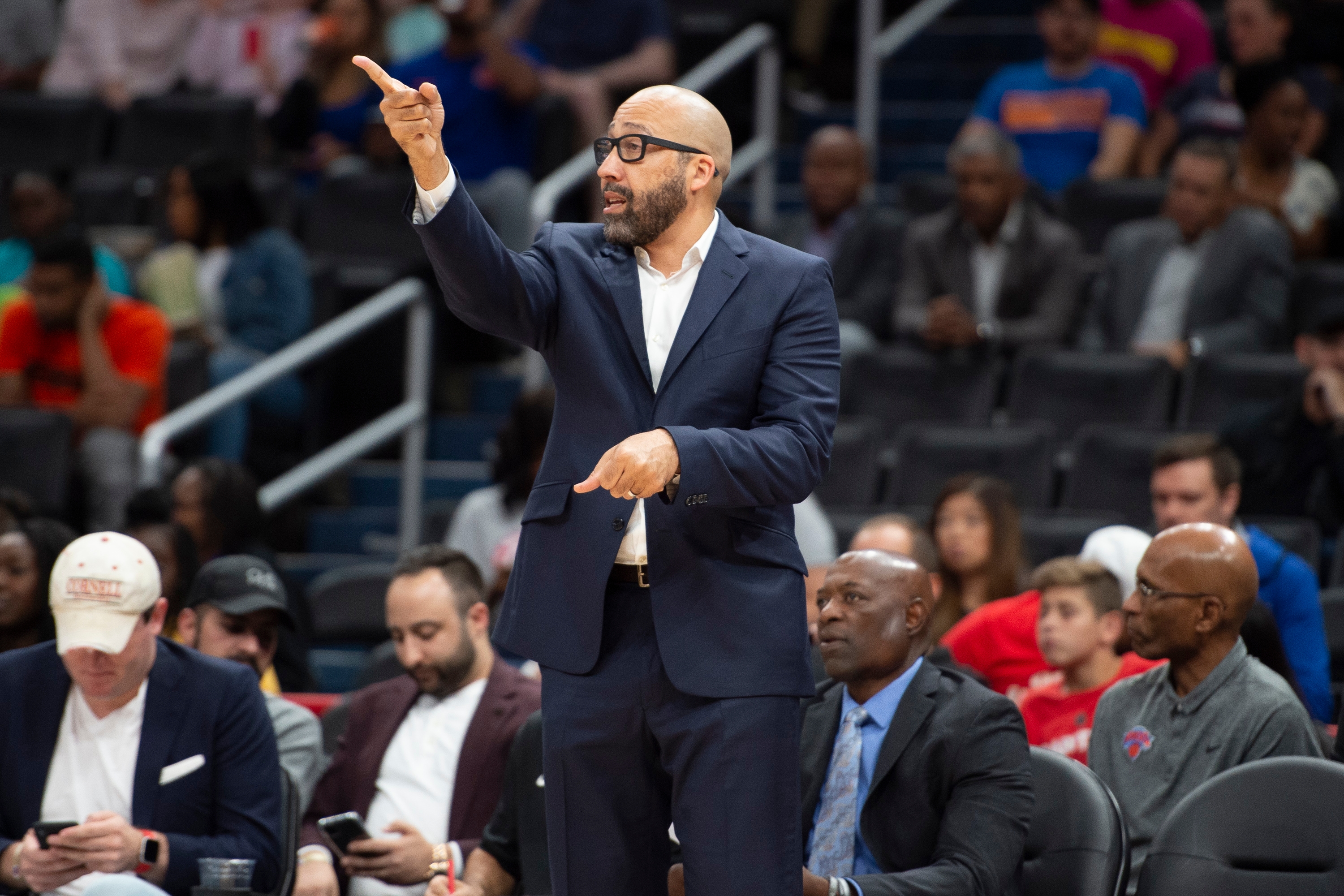 Oct 7, 2019; Washington, DC, USA; New York Knicks head coach David Fizdale looks onto the court during the first half against the Washington Wizards at Capital One Arena. Mandatory Credit: Tommy Gilligan-USA TODAY Sports / Tommy Gilligan