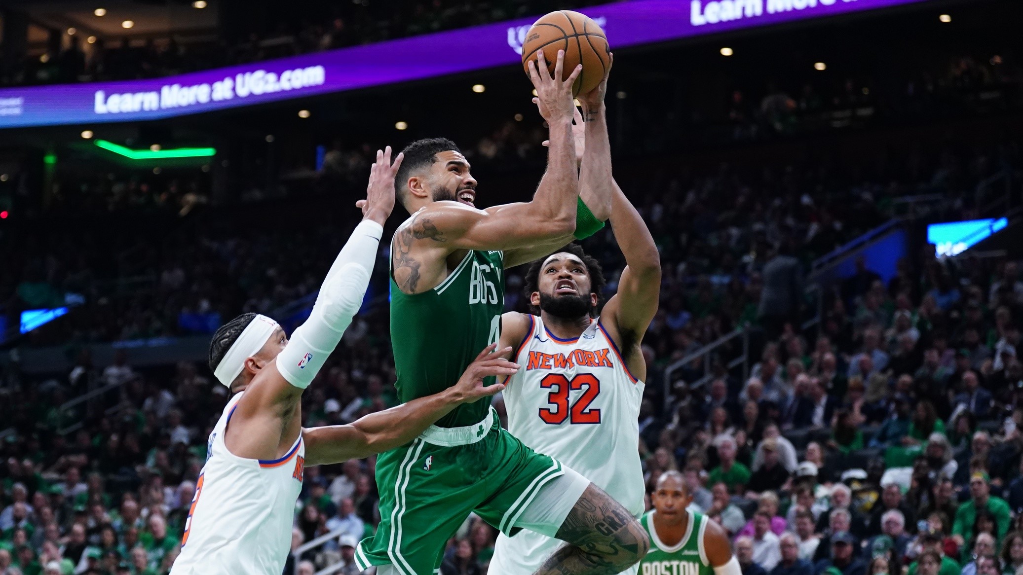 Knicks open regular season with 132-109 blowout loss to CelticsCeltics shot 50.5 percent from the field and made 29 threes10/23/2024, 1:45 AMPhillip MartinezEditorial ProducerOct 22, 2024; Boston, Massachusetts, USA; Boston Celtics forward Jayson Tatum (0) drives to the basket against New York Knicks center Karl-Anthony Towns (32) in the second quarter at TD Garden. / David Butler II-Imagn Images