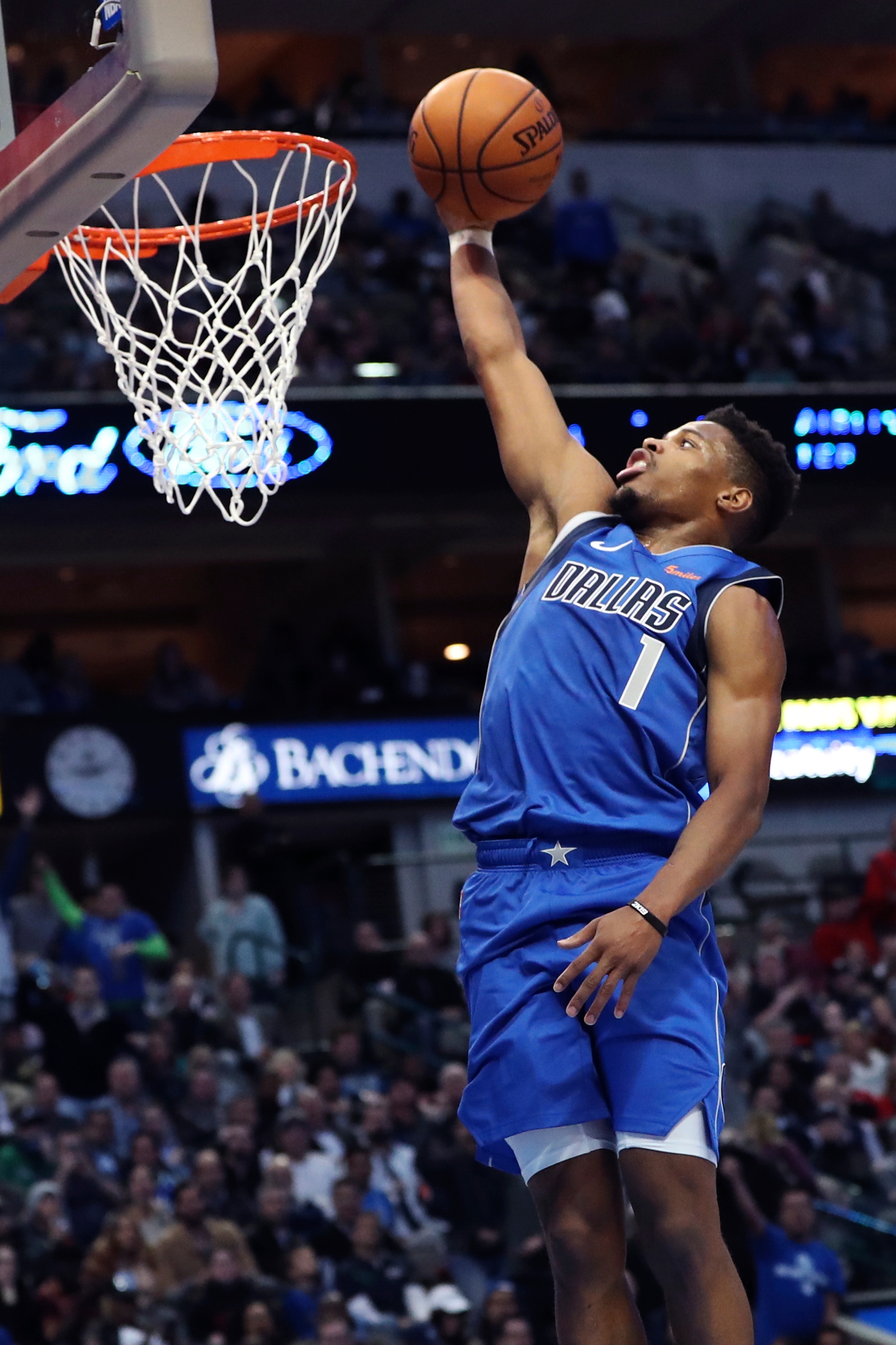 Dallas Mavericks guard Dennis Smith Jr. dunks during the second half against the Portland Trail Blazers at American Airlines Center. / Kevin Jairaj/USA TODAY Sports