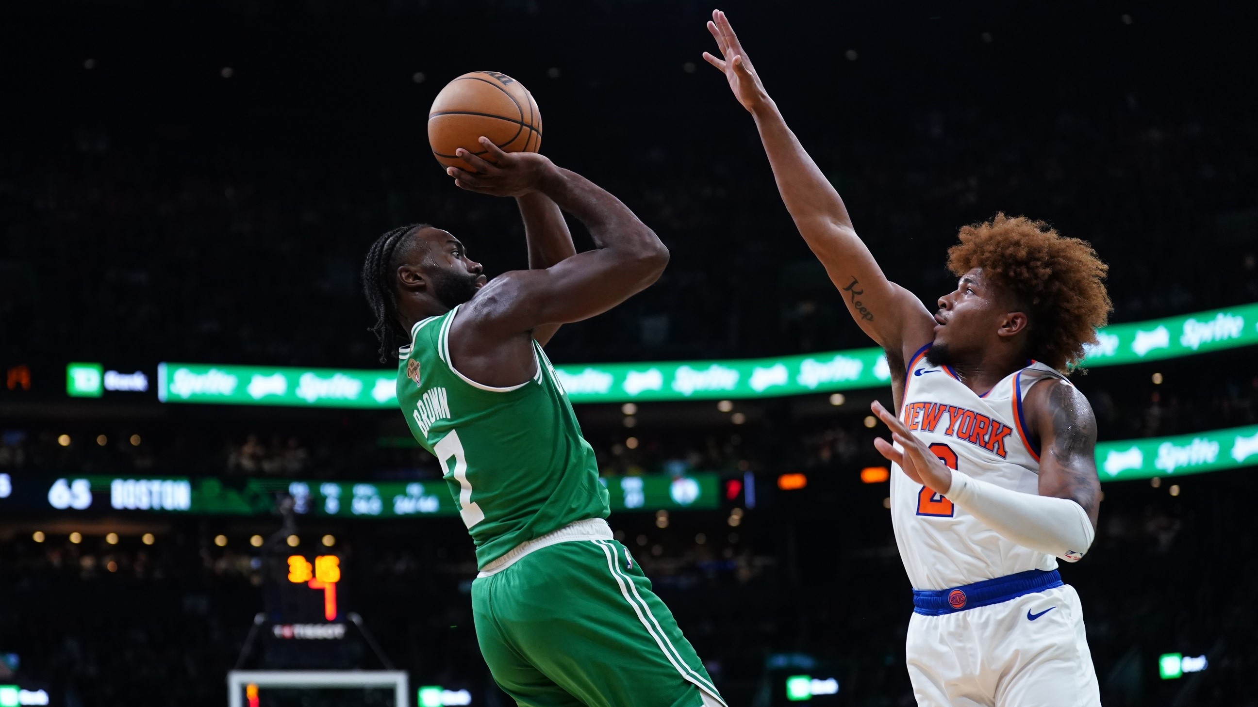Knicks' defense takes 'punch in the mouth' in lopsided opening-night loss to CelticsCeltics tied NBA record with 29 made three-pointers10/23/2024, 5:08 AMIan BegleyNBA Insider
