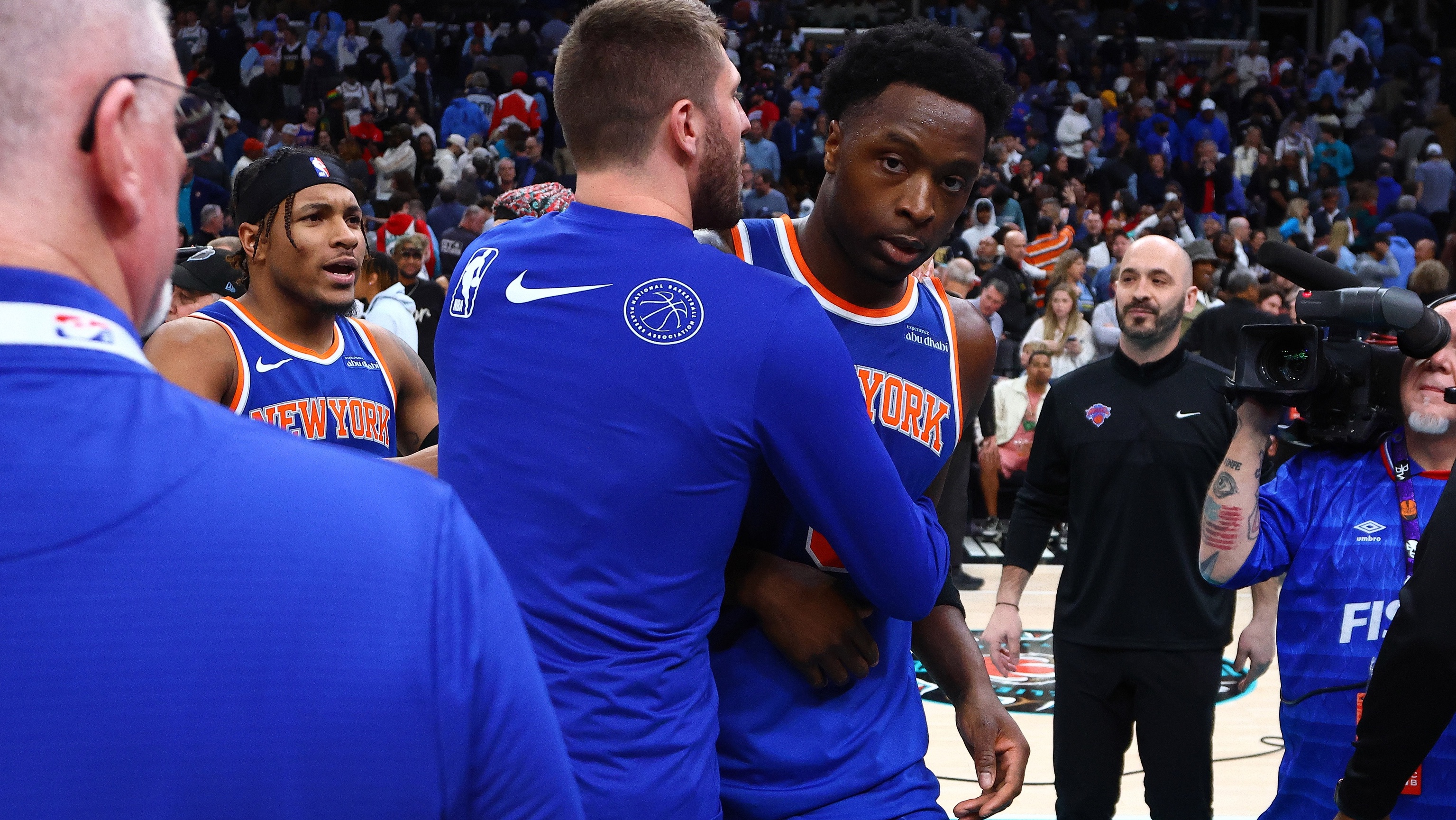 OG Anunoby's three-pointer lifts Knicks over Grizzlies in exciting 114-113 comeback winNew York was at full strength for first time this season with Mitchell Robinson back in fold3/1/2025, 3:49 AMRobert SanchezFreelance Editorial ProducerNew York Knicks forward OG Anunoby (8) reacts with forward Matt Ryan (37) after defeating the Memphis Grizzlies at FedExForum. / Petre Thomas-Imagn Images