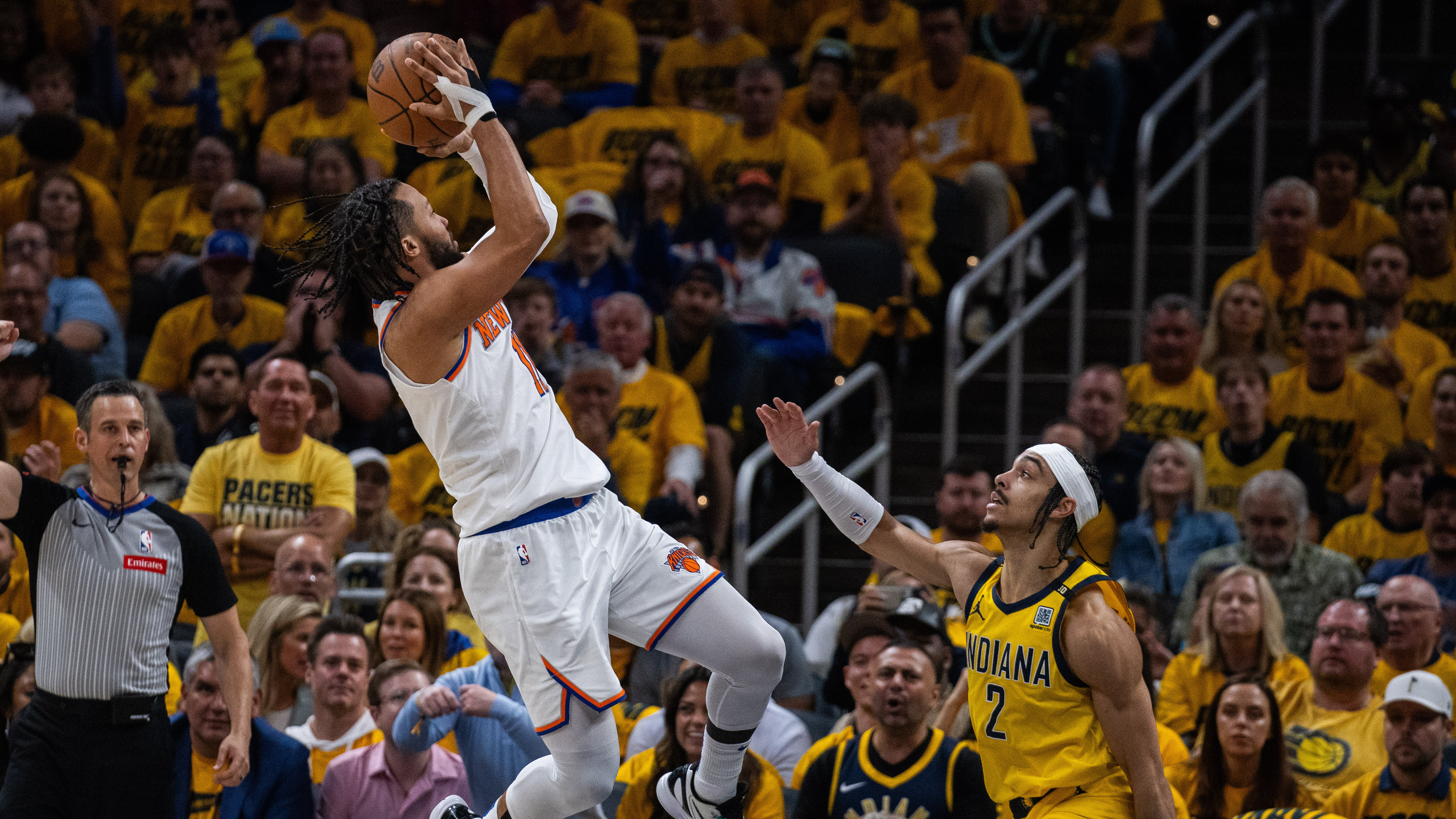 Knicks' gutsy performance not enough in Game 3 loss to PacersDonte Divincenzo scores 35, but Indiana comes up clutch late5/11/2024, 1:56 AMDavid VertsbergerNBA freelance writerNew York Knicks guard Jalen Brunson (11) shoots the ball while Indiana Pacers guard Andrew Nembhard (2) defends during game three of the second round for the 2024 NBA playoffs at Gainbridge Fieldhouse. / Trevor Ruszkowski-USA TODAY Sports
