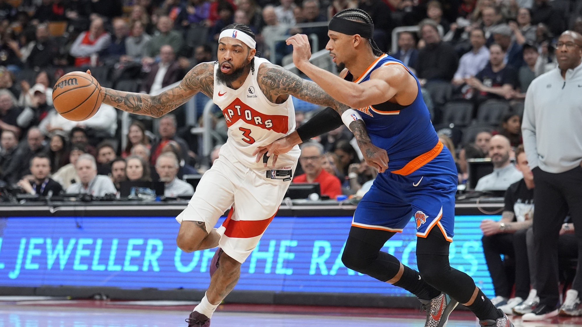 Knicks showing they can lean on defensive side of ball to win games'To know that you can hang your hat on that end of the floor is going to be huge for us'3/4/2026, 4:28 AMPhillip MartinezEditorial ProducerMar 3, 2026; Toronto, Ontario, CAN; Toronto Raptors forward Brandon Ingram (3) drives to the basket against New York Knicks forward Josh Hart (3) during the second half at Scotiabank Arena. / John E. Sokolowski-Imagn Images
