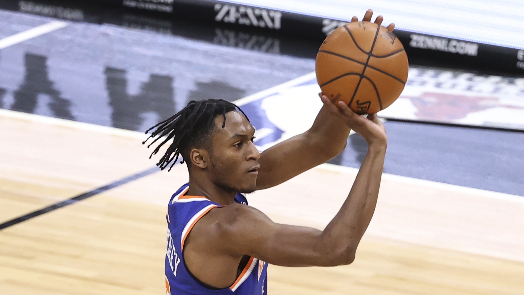 Knicks' Immanuel Quickley is proving he's not a one-shot ponyQuickley did damage from three-point land on Monday in win over Hawks2/16/2021, 5:22 AMCoby GreenFreelance Editorial ProducerFeb 1, 2021; Chicago, Illinois, USA; New York Knicks guard Immanuel Quickley (5) shoots and scores a three-pointer against the Chicago Bulls during the second half of an NBA game at United Center. / © Kamil Krzaczynski-USA TODAY Sports