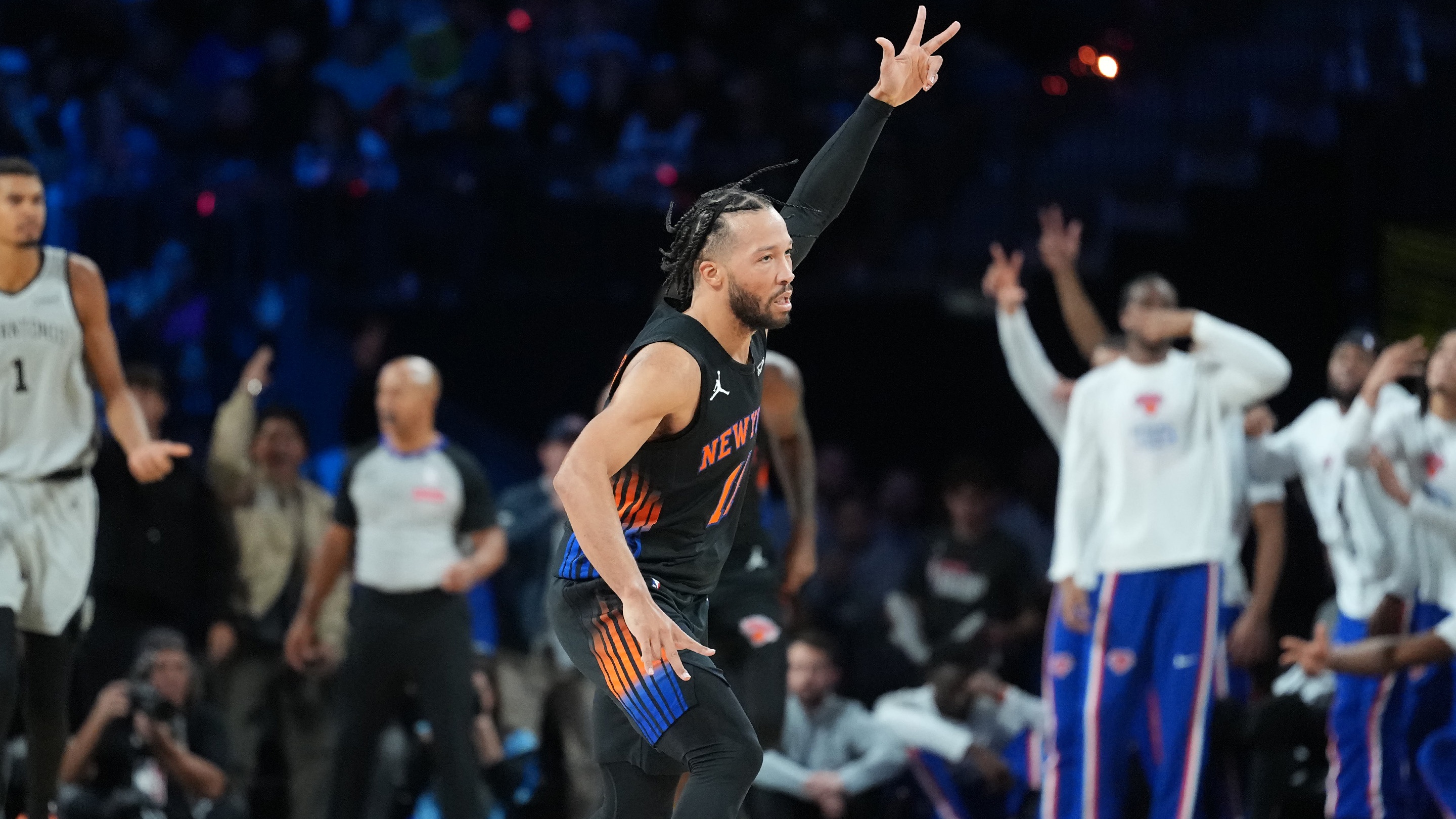 Knicks' Jalen Brunson named 2025 NBA Cup MVPBrunson averaged 33.5 points during the tournament12/17/2025, 4:17 AMJohn FlaniganFreelance Editorial ProducerNew York Knicks guard Jalen Brunson (11) reacts after making a three point basket against the San Antonio Spurs during the Emirates NBA Cup Final at T-Mobile Arena / Kirby Lee - Imagn Images