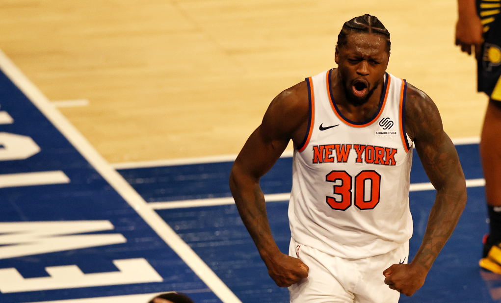 Feb 27, 2021; New York, New York, USA; Julius Randle #30 of the New York Knicks celebrates after drawing the foul late in the fourth quarter against the Indiana Pacers at Madison Square Garden. Mandatory Credit: POOL PHOTOS-USA TODAY Sports / POOL PHOTOS-USA TODAY Sports