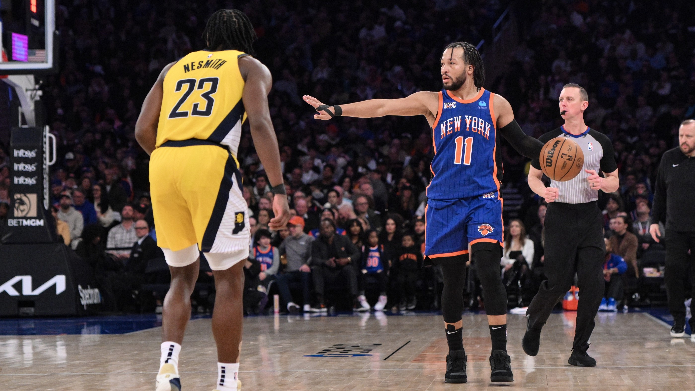 Knicks’ playoff schedule for second round of 2024 NBA postseasonGame 1 is Monday at The Garden5/3/2024, 3:52 AMPhillip MartinezEditorial ProducerFeb 10, 2024; New York, New York, USA; New York Knicks guard Jalen Brunson (11) sets the play while being defended by Indiana Pacers forward Aaron Nesmith (23) during the third quarter at Madison Square Garden. / John Jones-USA TODAY Sports