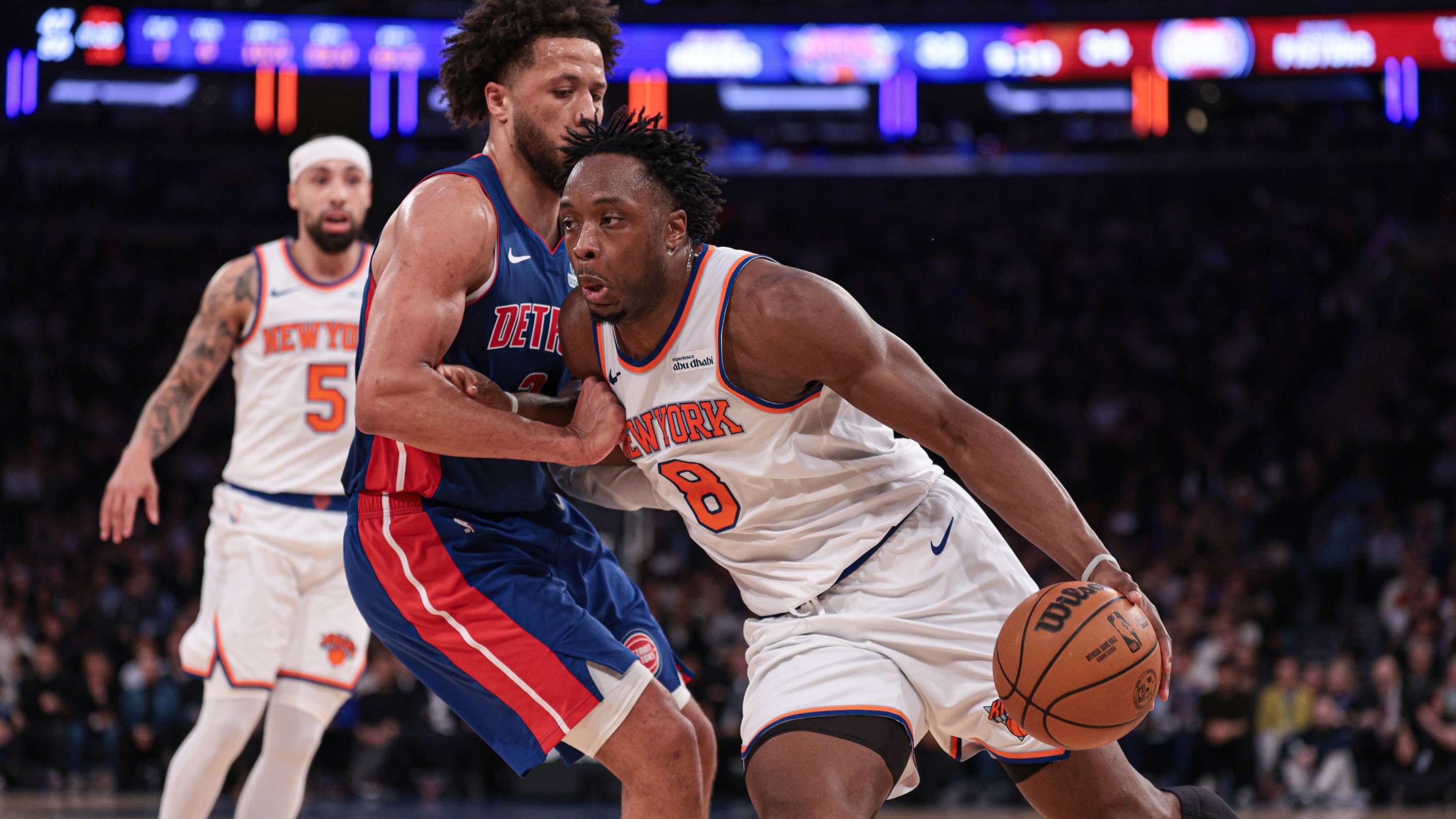 Knicks swept in season series by Pistons following 126-111 lossNew York shot 23 percent from three-point range2/20/2026, 3:23 AMRobert SanchezFreelance Editorial ProducerFeb 19, 2026; New York, New York, USA; New York Knicks forward Og Anunoby (8) drives to the basket against Detroit Pistons guard Cade Cunningham (2) during the first half at Madison Square Garden. / Vincent Carchietta-Imagn Images