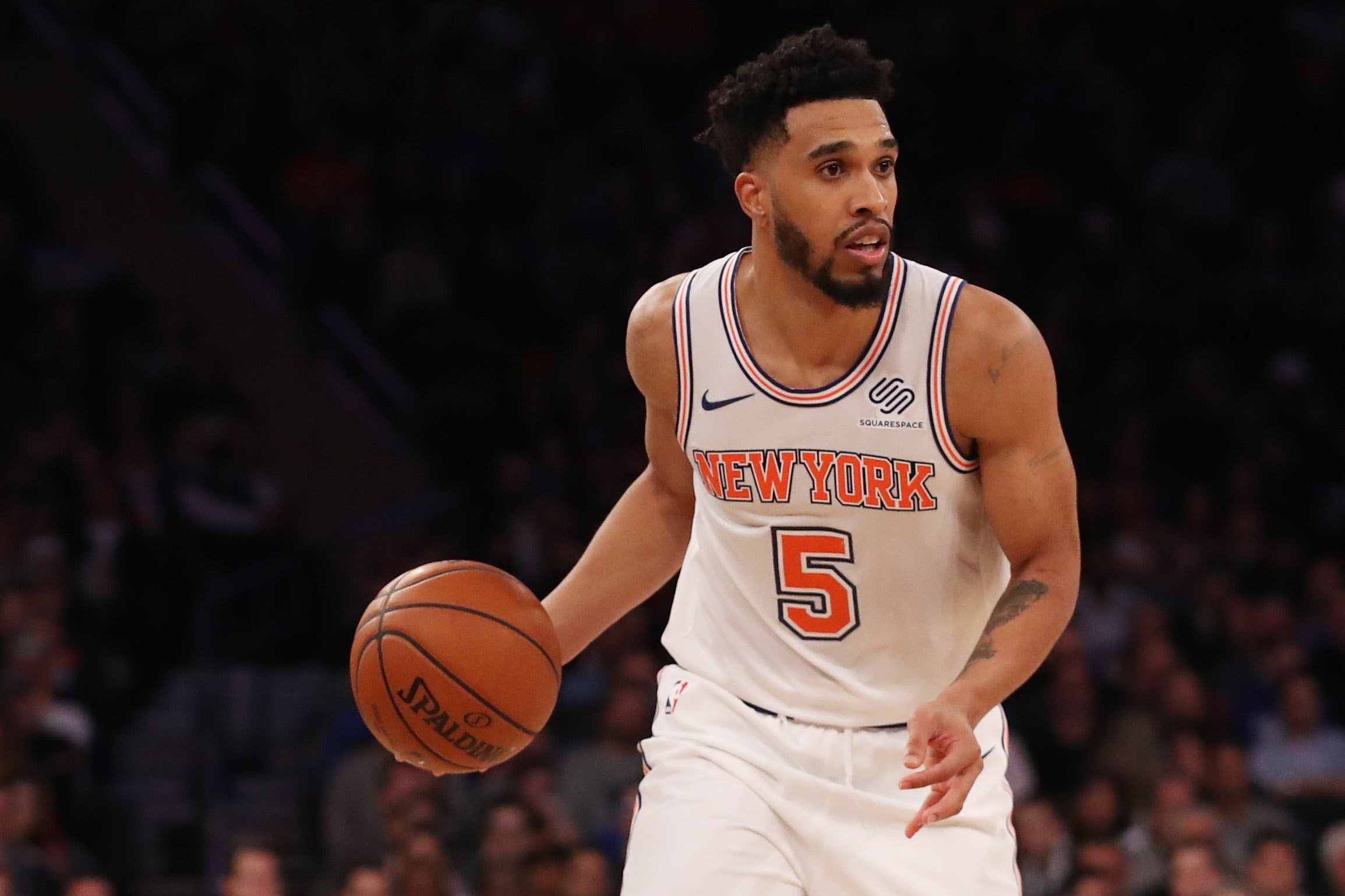 Dec 6, 2017; New York, NY, USA; New York Knicks guard Courtney Lee (5) drives the ball during the fourth quarter against the Memphis Grizzlies at Madison Square Garden. Mandatory Credit: Anthony Gruppuso-USA TODAY Sports / Anthony Gruppuso