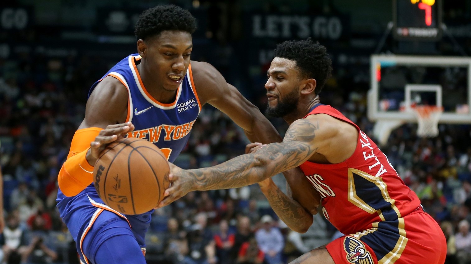 Knicks’ RJ Barrett on offensive woes: ‘I’ve been in shooting funks before’Barrett's numbers are down from last season, but the 21-year-old isn't worried12/4/2021, 10:32 PMPhillip MartinezEditorial ProducerIan BegleyNBA InsiderOct 30, 2021; New Orleans, Louisiana, USA; New York Knicks guard RJ Barrett (9) is defended by New Orleans Pelicans guard Nickeil Alexander-Walker (6) in the second quarter at the Smoothie King Center. / Chuck Cook-USA TODAY Sports