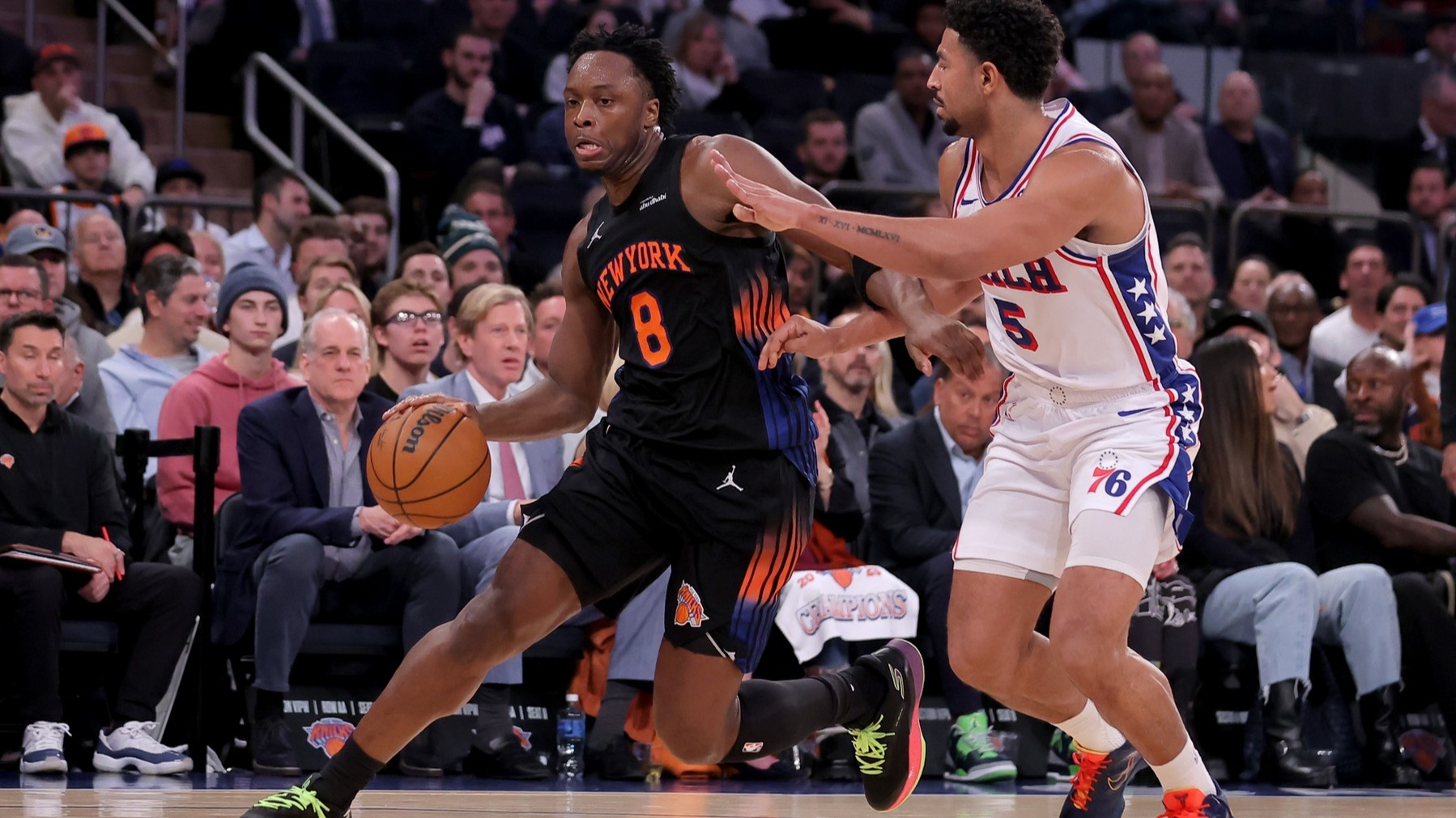 Knicks can't overcome turnover issues in 116-107 loss to 76ersNew York suffered just second loss at home this season12/20/2025, 2:48 AMPhillip MartinezEditorial ProducerDec 19, 2025; New York, New York, USA; New York Knicks forward Og Anunoby (8) drives to the basket against Philadelphia 76ers guard Quentin Grimes (5) during the second quarter at Madison Square Garden. / Brad Penner-Imagn Images