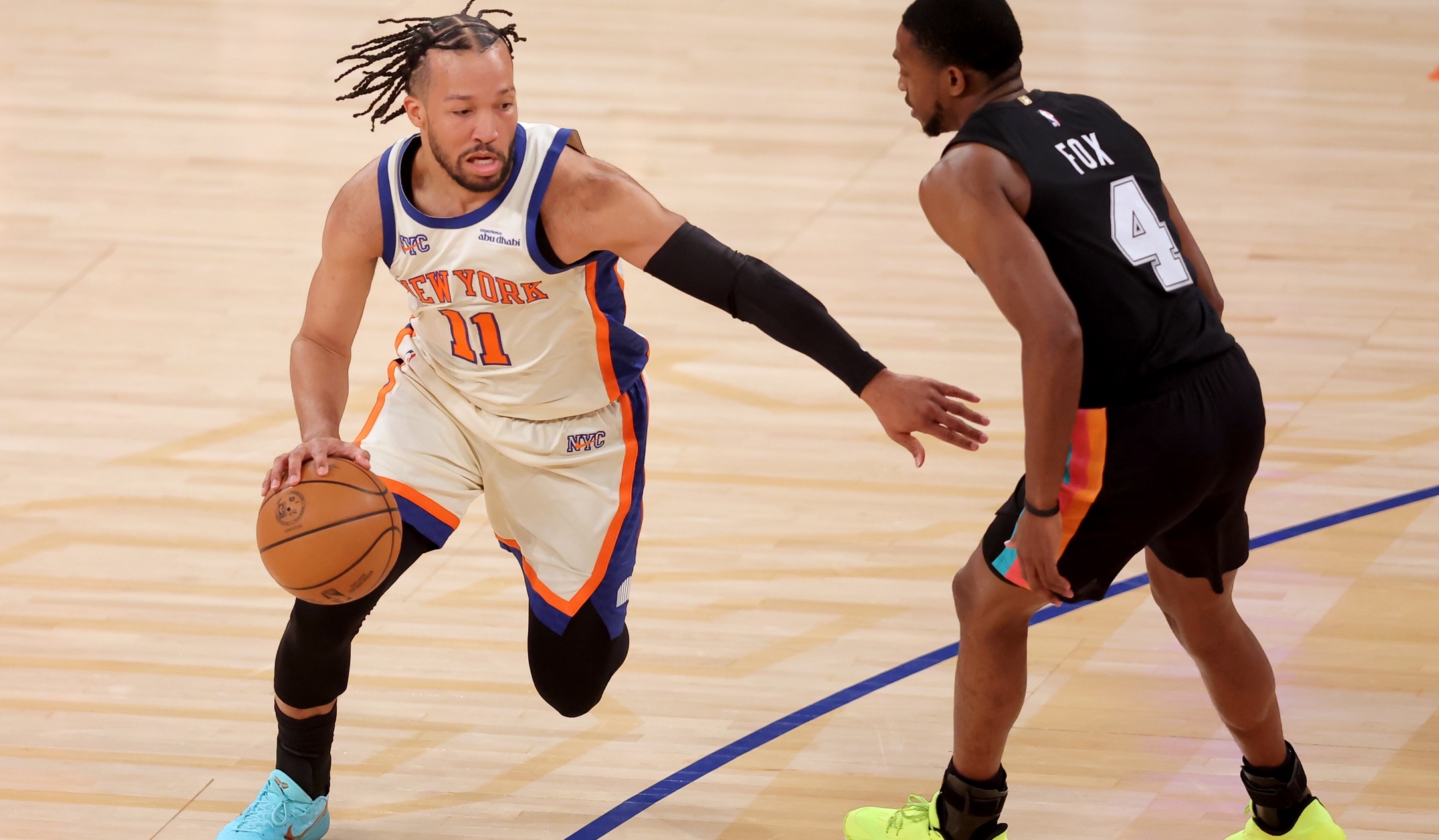 Knicks return home, take care of streaking Spurs in 114-89 blowout winNew York puts an end to San Antonio's 11-game win streak3/1/2026, 8:52 PMDavid VertsbergerNBA freelance writerNew York Knicks guard Jalen Brunson (11) drives to the basket against San Antonio Spurs guard De'Aaron Fox (4) during the first quarter at Madison Square Garden. / Brad Penner-Imagn Images