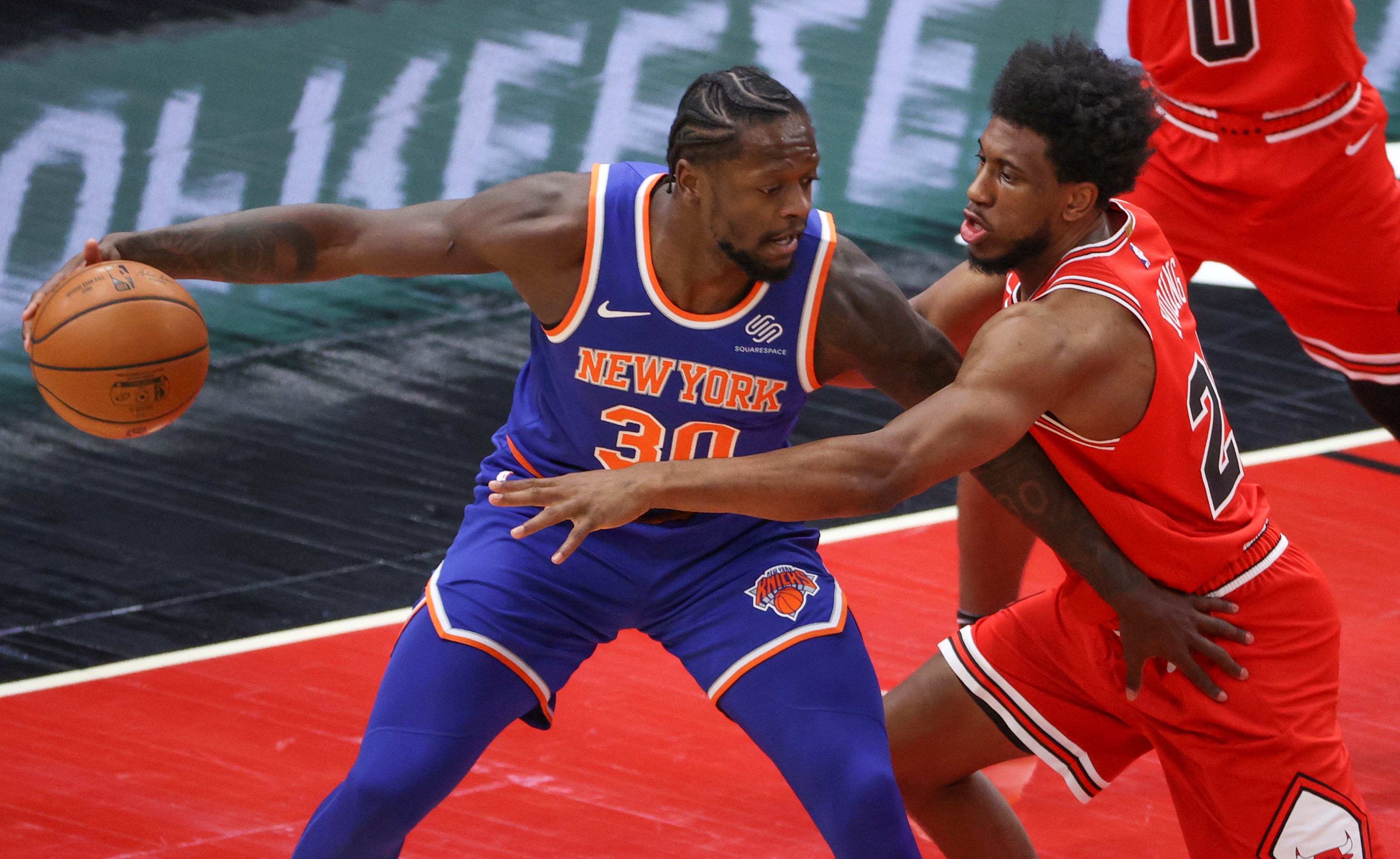 Knicks Takeaways from Monday's 110-102 loss to the Bulls, including a rough three-point shooting nightJulius Randle finished the game with 23 points, 11 rebounds, and seven assists in 39 minutes2/2/2021, 3:32 AMColin MartinFreelance Editorial ProducerFeb 1, 2021; Chicago, Illinois, USA; Chicago Bulls forward Thaddeus Young (21) defends against New York Knicks forward Julius Randle (30) during the first half of an NBA game at United Center. / Kamil Krzaczynski-USA TODAY Sports
