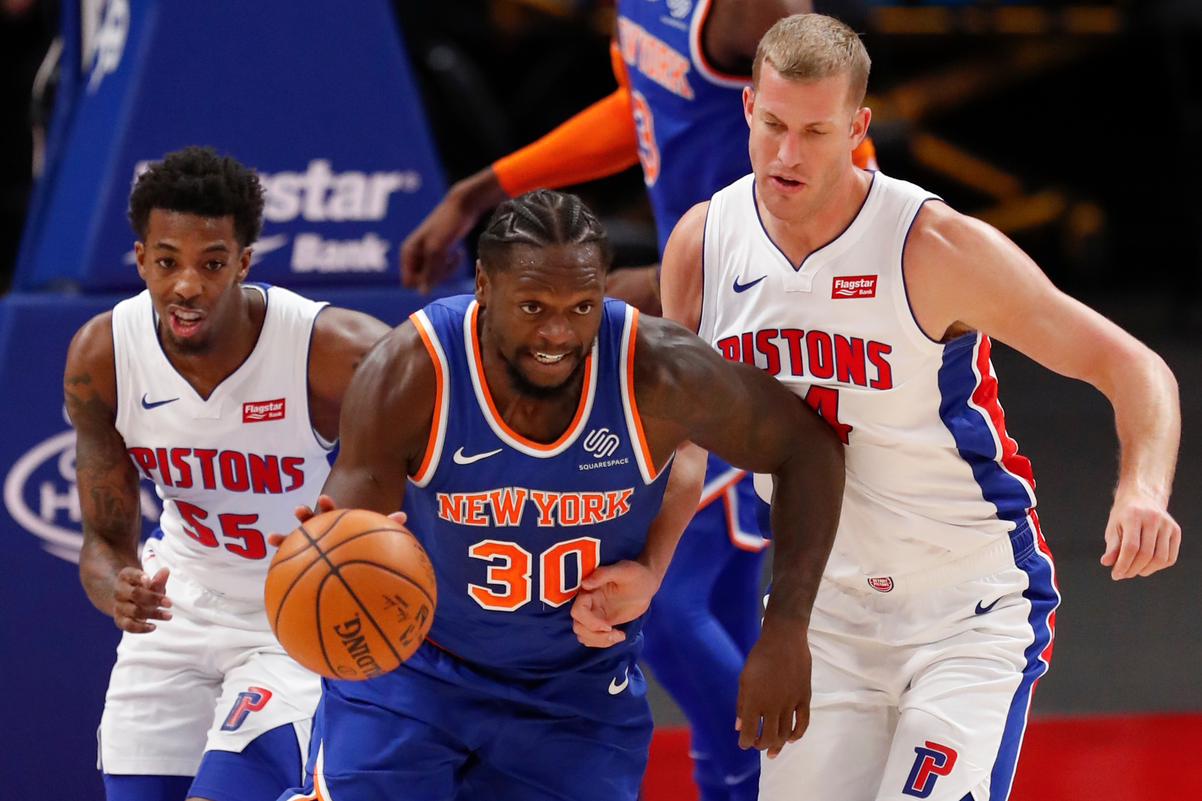 Knicks Takeaways from Sunday's 99-91 preseason loss to Pistons, including three-point shooting strugglesPlus notes on RJ Barrett, Julius Randle, Immanuel Quickley12/14/2020, 2:49 AMGarrett StepienFreelance Editorial ProducerDec 13, 2020; Detroit, Michigan, USA; New York Knicks forward Julius Randle (30) gets fouled by Detroit Pistons forward Mason Plumlee (24) during the first quarter at Little Caesars Arena. Mandatory Credit: Raj Mehta-USA TODAY Sports / © Raj Mehta-USA TODAY Sports