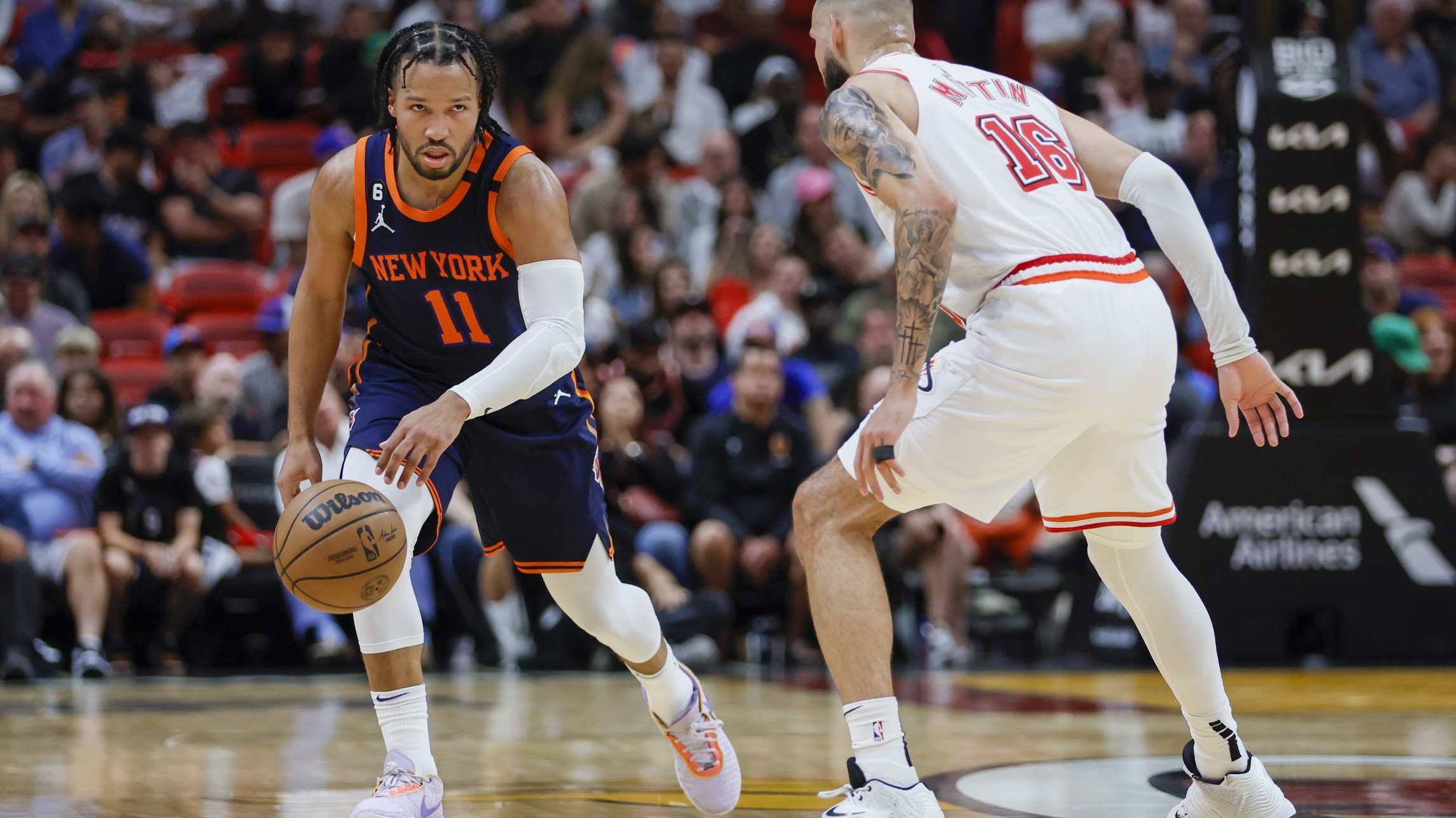 Knicks takeaways from Wednesday's 127-120 loss to Heat, including another poor defensive effortIt's the second game in a row a team shot 57 percent from three against the Knicks3/23/2023, 2:04 AMPhillip MartinezEditorial ProducerMar 22, 2023; Miami, Florida, USA; New York Knicks guard Jalen Brunson (11) dribbles the basketball as Miami Heat forward Caleb Martin (16) defends during the second quarter at Miami-Dade Arena. / Sam Navarro-USA TODAY Sports