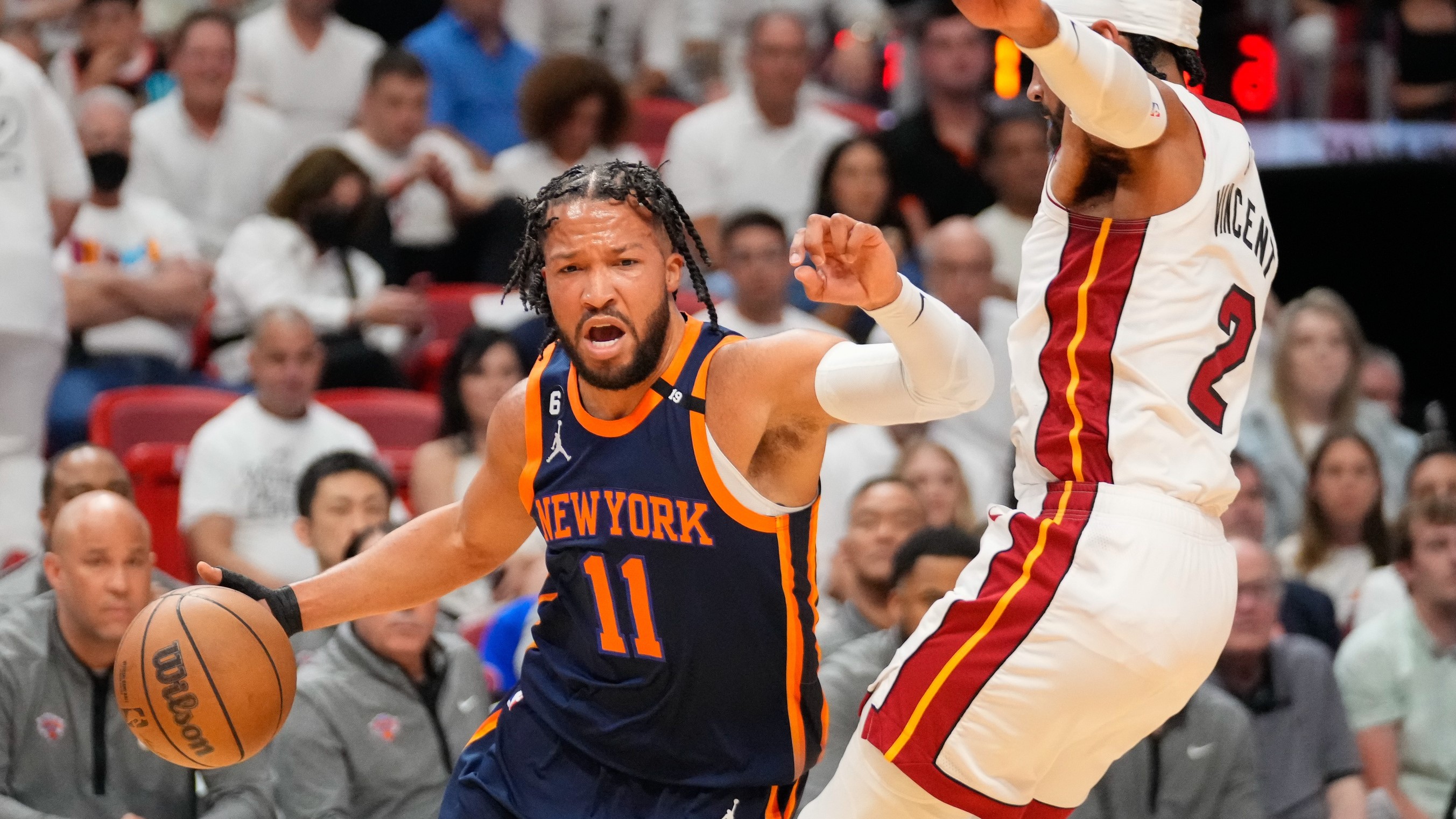 Knicks takeaways from Saturday’s Game 3 105-86 loss to Heat, including poor shootingJimmy Butler returned and had a game-high 28 points for Miami5/6/2023, 10:24 PMPhillip MartinezEditorial ProducerMay 6, 2023; Miami, Florida, USA; New York Knicks guard Jalen Brunson (11) dribbles the ball past Miami Heat guard Gabe Vincent (2) during the first quarter of game three of the 2023 NBA playoffs at Kaseya Center. / Rich Storry-USA TODAY Sports