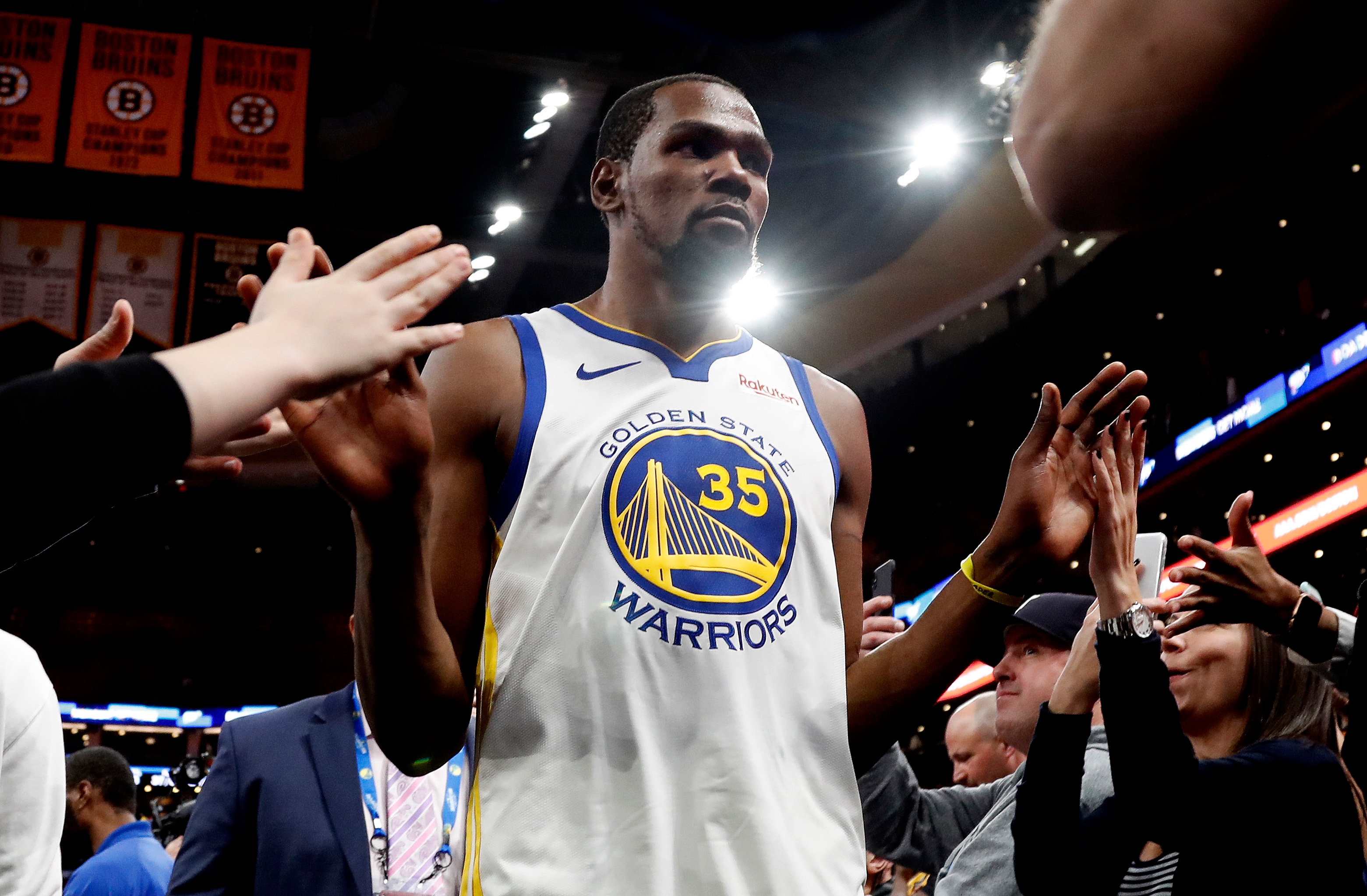 Jan 26, 2019; Boston, MA, USA; Golden State Warriors forward Kevin Durant (35) leaves the court after a 115-111 victory over the Boston Celtics at TD Garden. Mandatory Credit: Winslow Townson-USA TODAY Sports / Winslow Townson