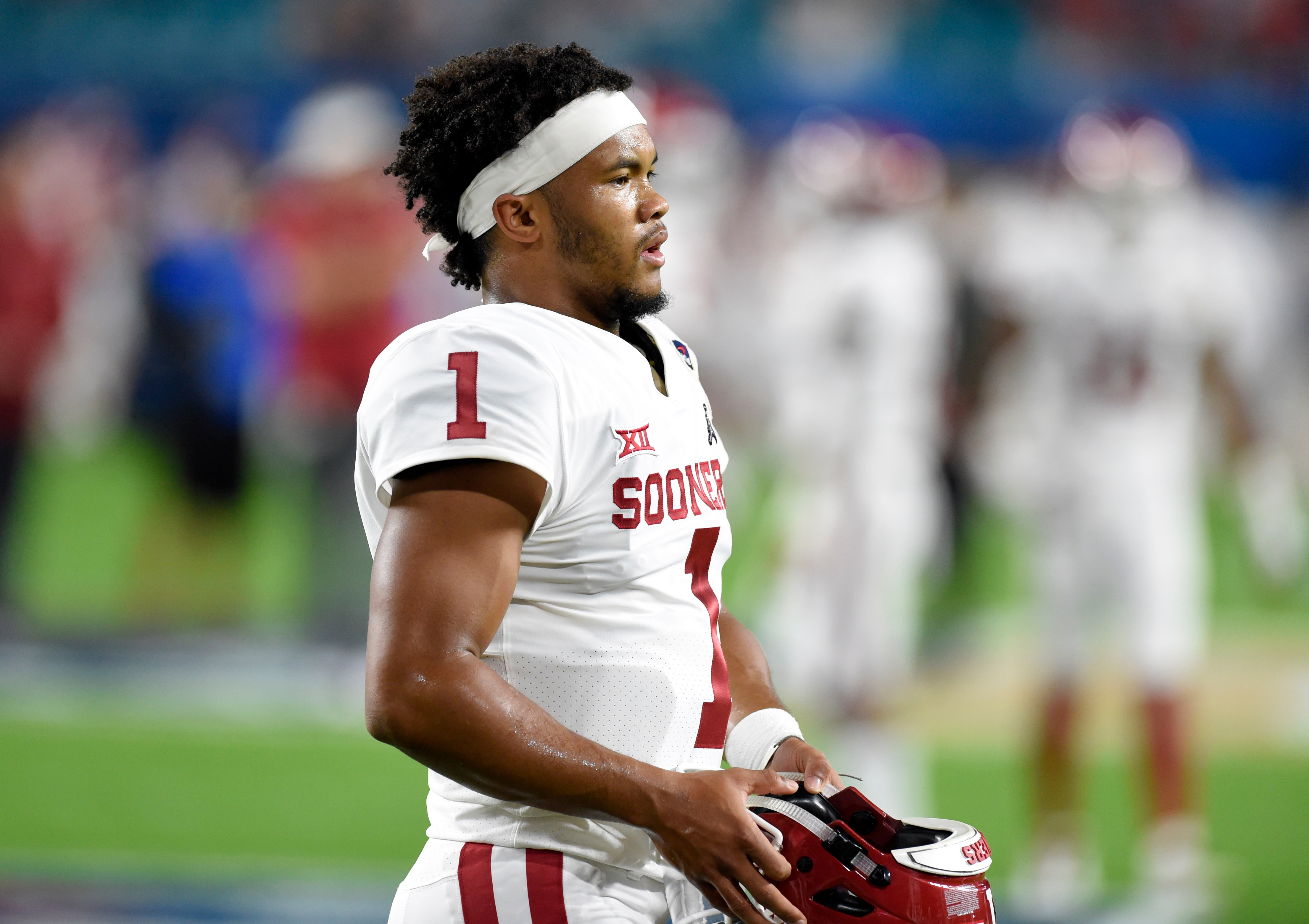 Dec 29, 2018; Miami Gardens, FL, USA; Oklahoma Sooners quarterback Kyler Murray (1) looks on prior to the 2018 Orange Bowl college football playoff semifinal game at Hard Rock Stadium. Mandatory Credit: John David Mercer-USA TODAY Sports / John David Mercer