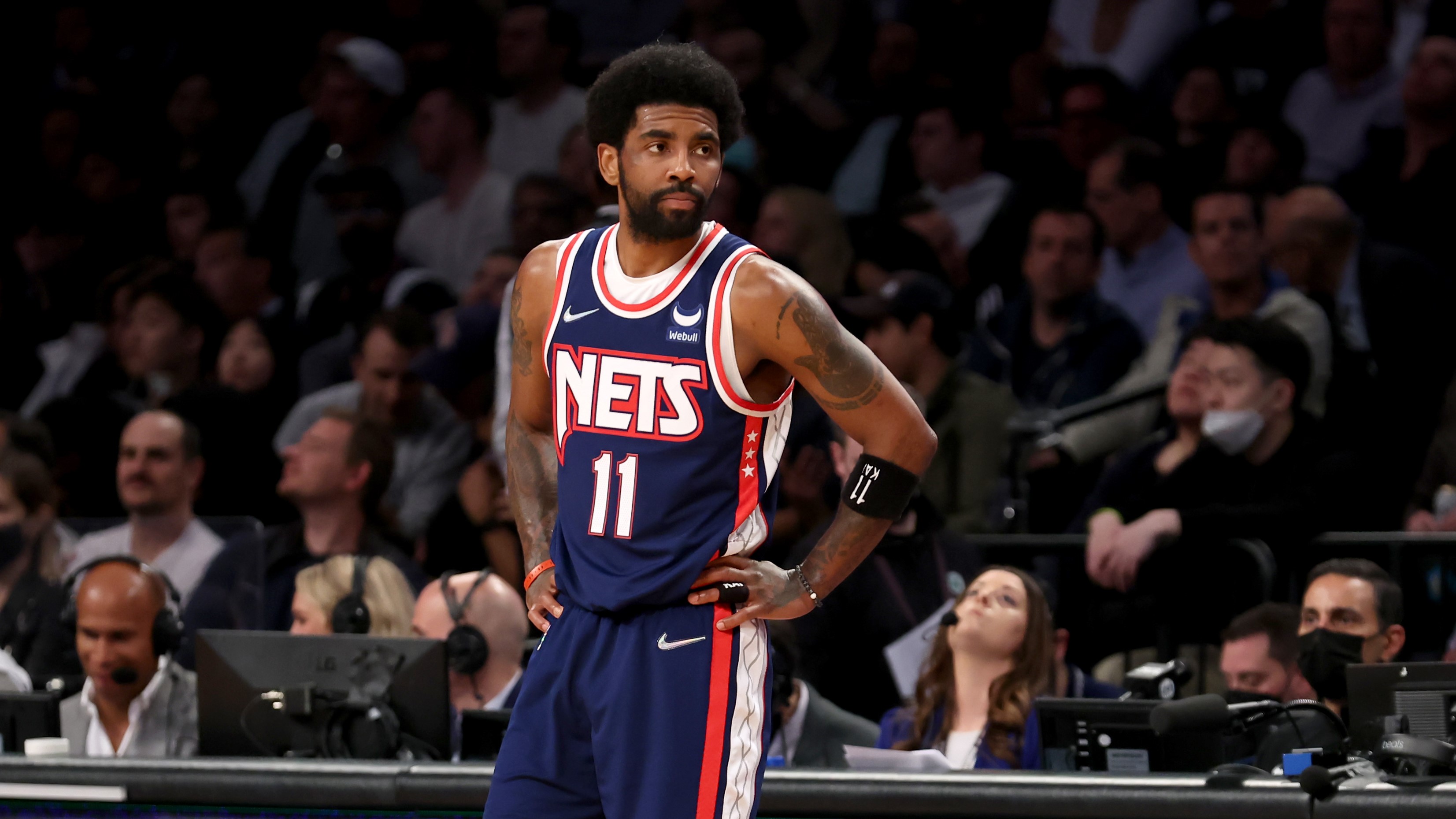 Apr 25, 2022; Brooklyn, New York, USA; Brooklyn Nets guard Kyrie Irving (11) reacts during the second quarter of game four of the first round of the 2022 NBA playoffs against the Boston Celtics at Barclays Center. Mandatory Credit: Brad Penner-USA TODAY Sports / Brad Penner-USA TODAY Sports