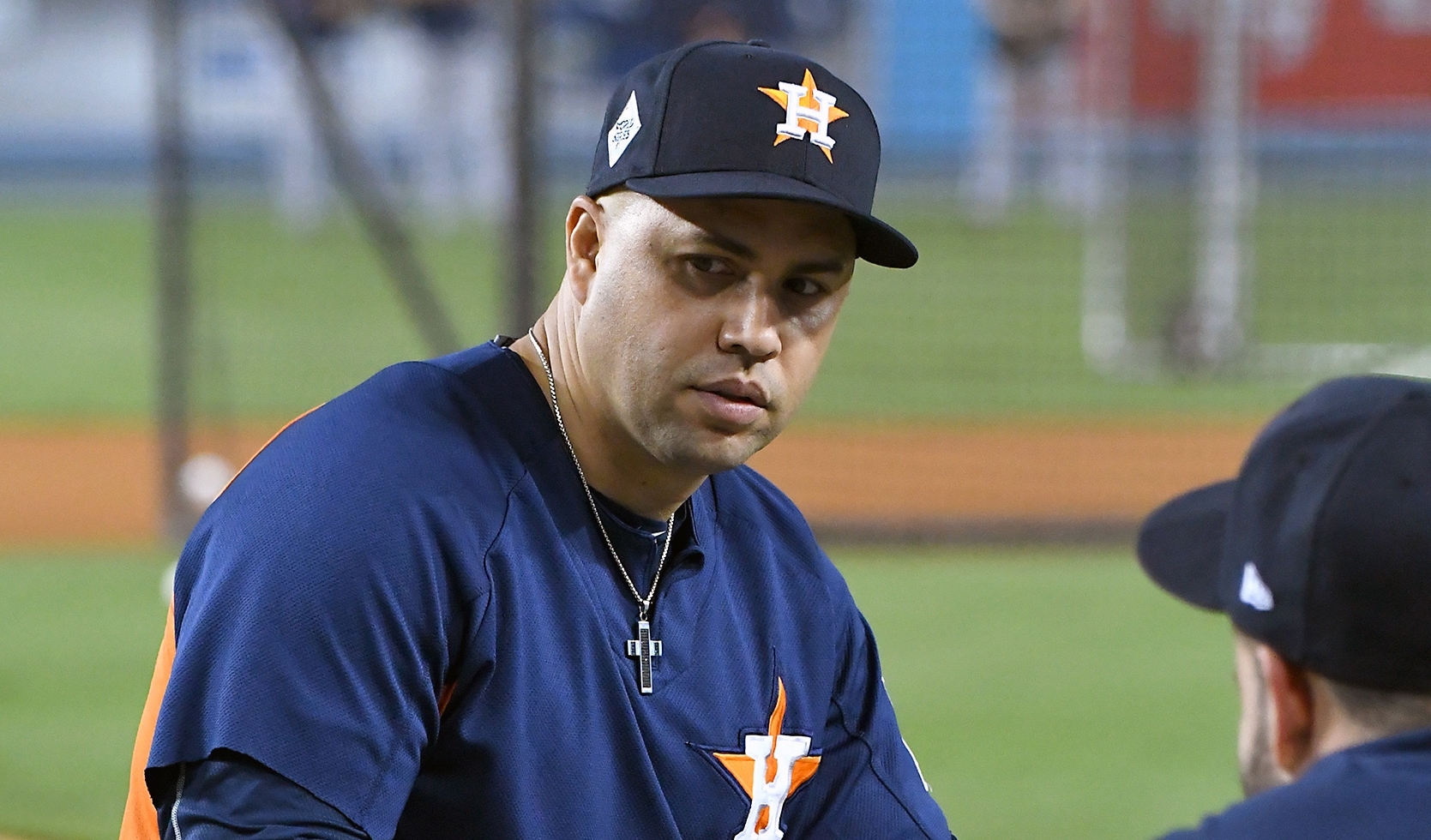 Oct 23, 2017; Los Angeles, CA, USA; Houston Astros designated hitter Carlos Beltran (15) talks to players during batting practice one day prior to game one of the World Series against the Los Angeles Dodgers at Dodger Stadium. / Jayne Kamin-Oncea/USA TODAY Sports