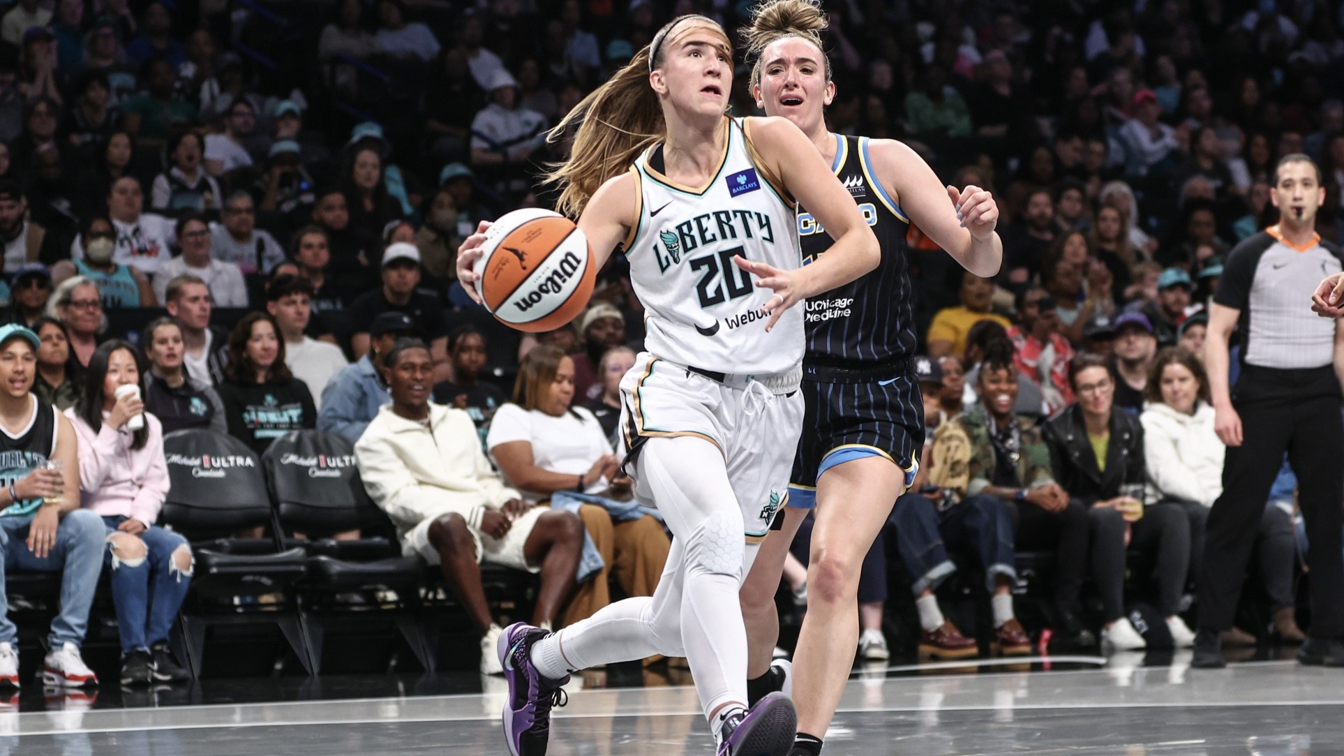 Liberty suffer first defeat of season with 90-81 loss to SkySabrina Ionescu had a team-high 19 points5/24/2024, 1:12 AMPhillip MartinezEditorial ProducerMay 23, 2024; Brooklyn, New York, USA; New York Liberty guard Sabrina Ionescu (20) drives past Chicago Sky guard Marina Mabrey (4) in the first quarter at Barclays Center. / Wendell Cruz-USA TODAY Sports