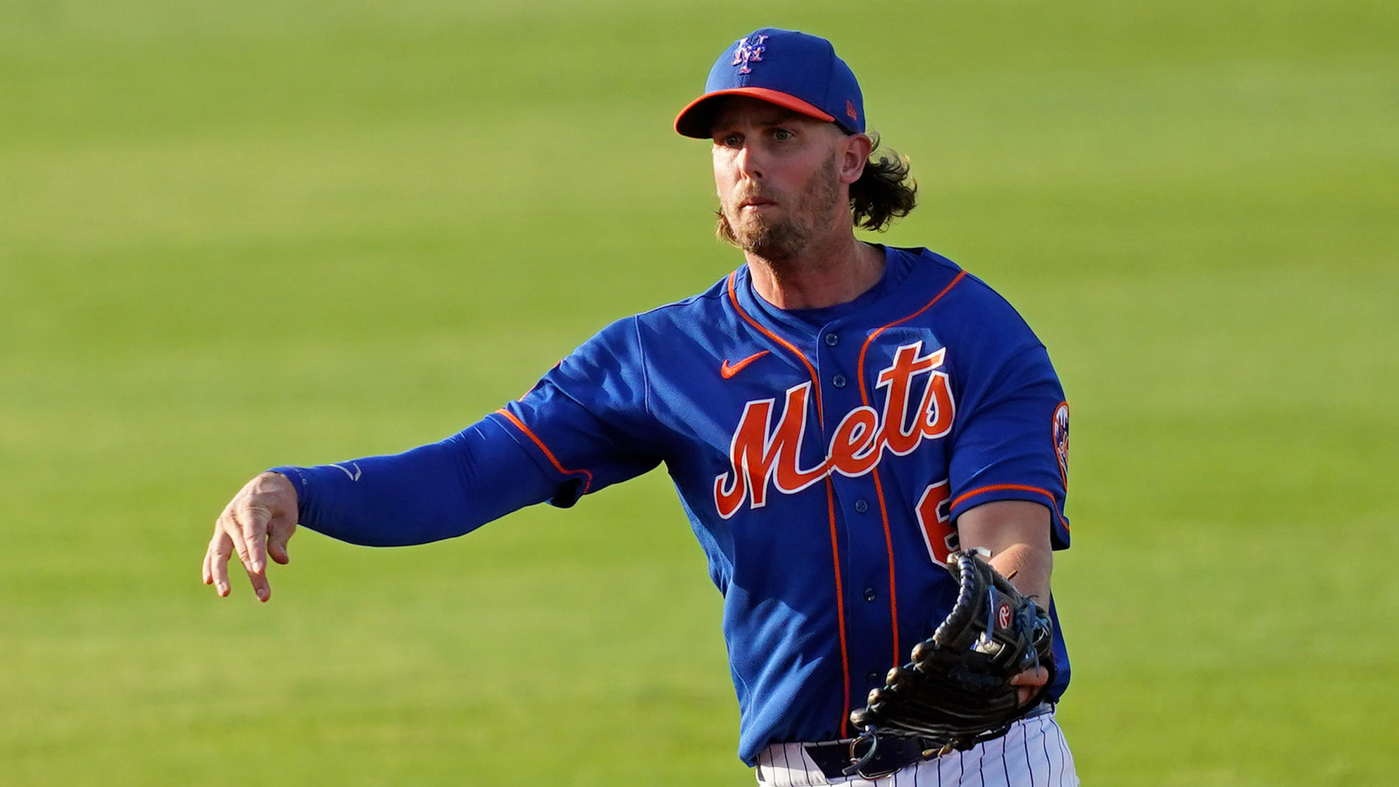 New York Mets second baseman Jeff McNeil (6) throws out Washington Nationals right fielder Hernan Perez (3, not pictured) in the 2nd inning of the spring training game at Clover Park. / Jasen Vinlove-USA TODAY Sports