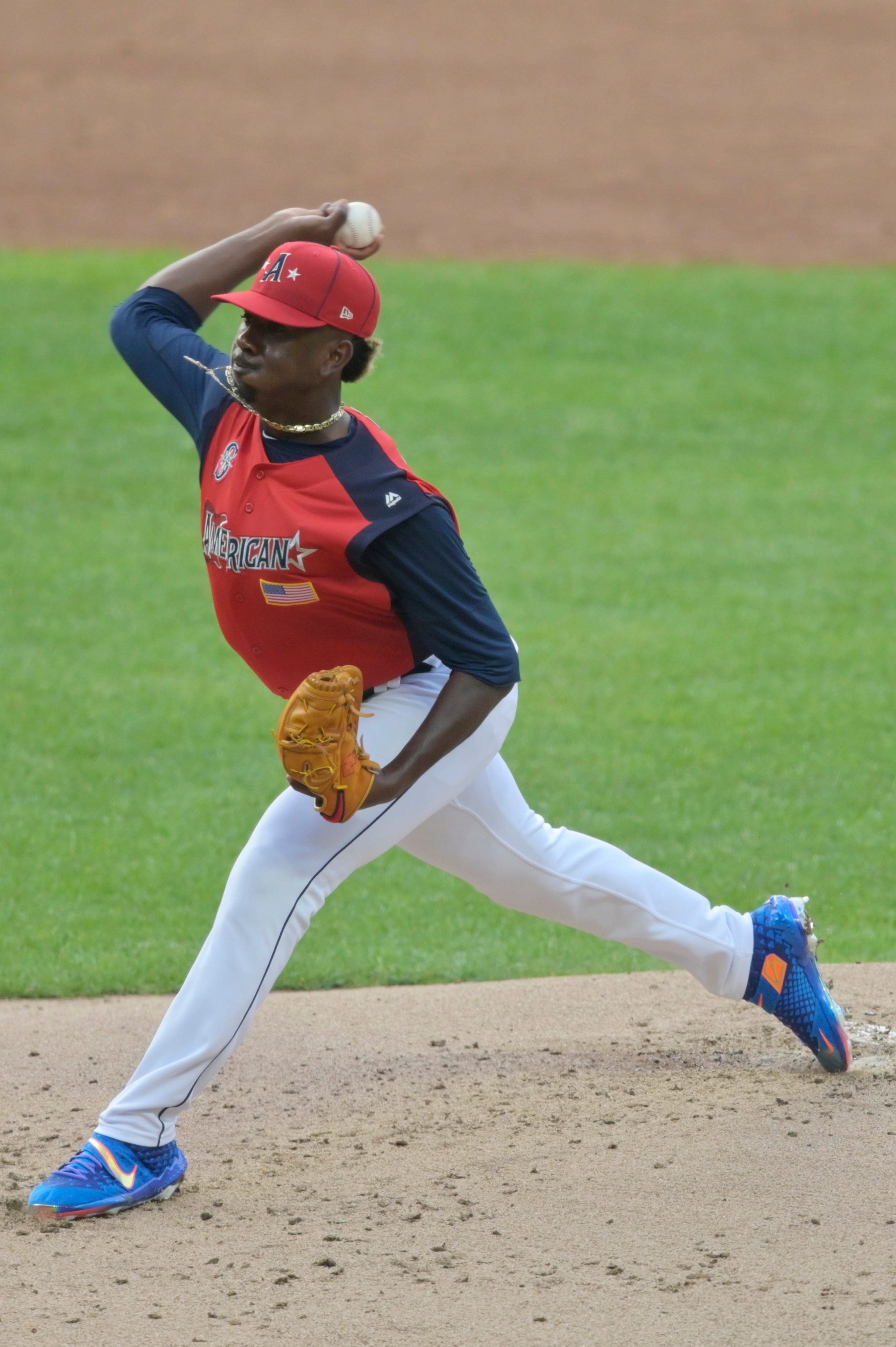 Jul 7, 2019; Cleveland, OH, USA; American League pitcher Justin Dunn (6) delivers in the second inning in the 2019 MLB All Star Futures Game at Progressive Field. Mandatory Credit: David Richard-USA TODAY Sports / David Richard