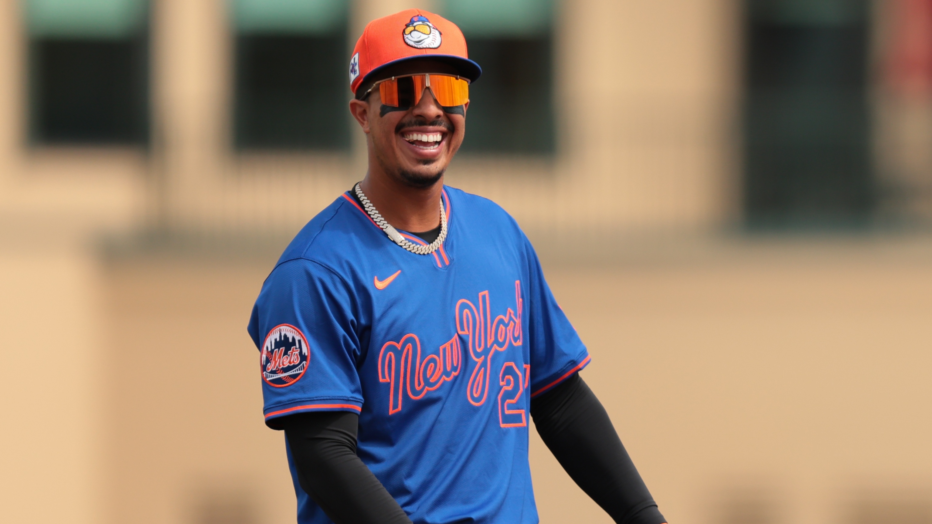 Oct 17, 2024; New York City, New York, USA; New York Mets third base Mark Vientos (27) reacts after hitting a home run against the Los Angeles Dodgers in the first inning during game four of the NLCS for the 2024 MLB playoffs at Citi Field. / Brad Penner - Imagn Images