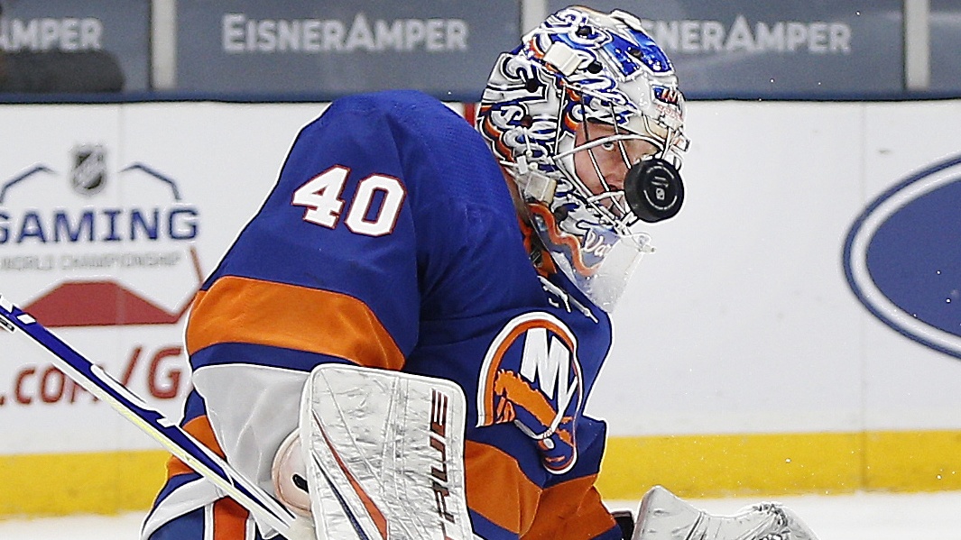 Mathew Barzal hat trick helps Islanders thrash Capitals, 8-4Jordan Eberle added two goals as well4/2/2021, 2:16 AMApr 1, 2021; Uniondale, New York, USA; New York Islanders goaltender Semyon Varlamov (40) eyes the puck after making a save against the Washington Capitals during the first period at Nassau Veterans Memorial Coliseum. / © Andy Marlin-USA TODAY Sports