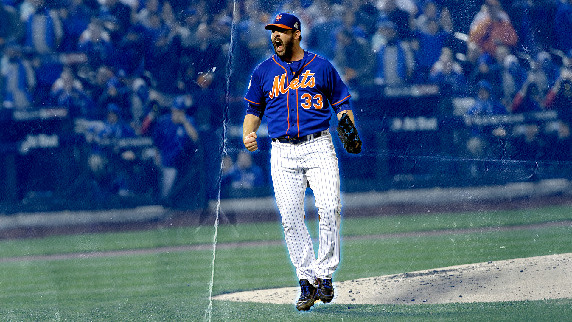 Nov 1, 2015; New York City, NY, USA; New York Mets starting pitcher Matt Harvey reacts after striking out the side in the fourth inning in game five of the World Series against the Kansas City Royals at Citi Field. / Jeff Curry-USA TODAY Sports