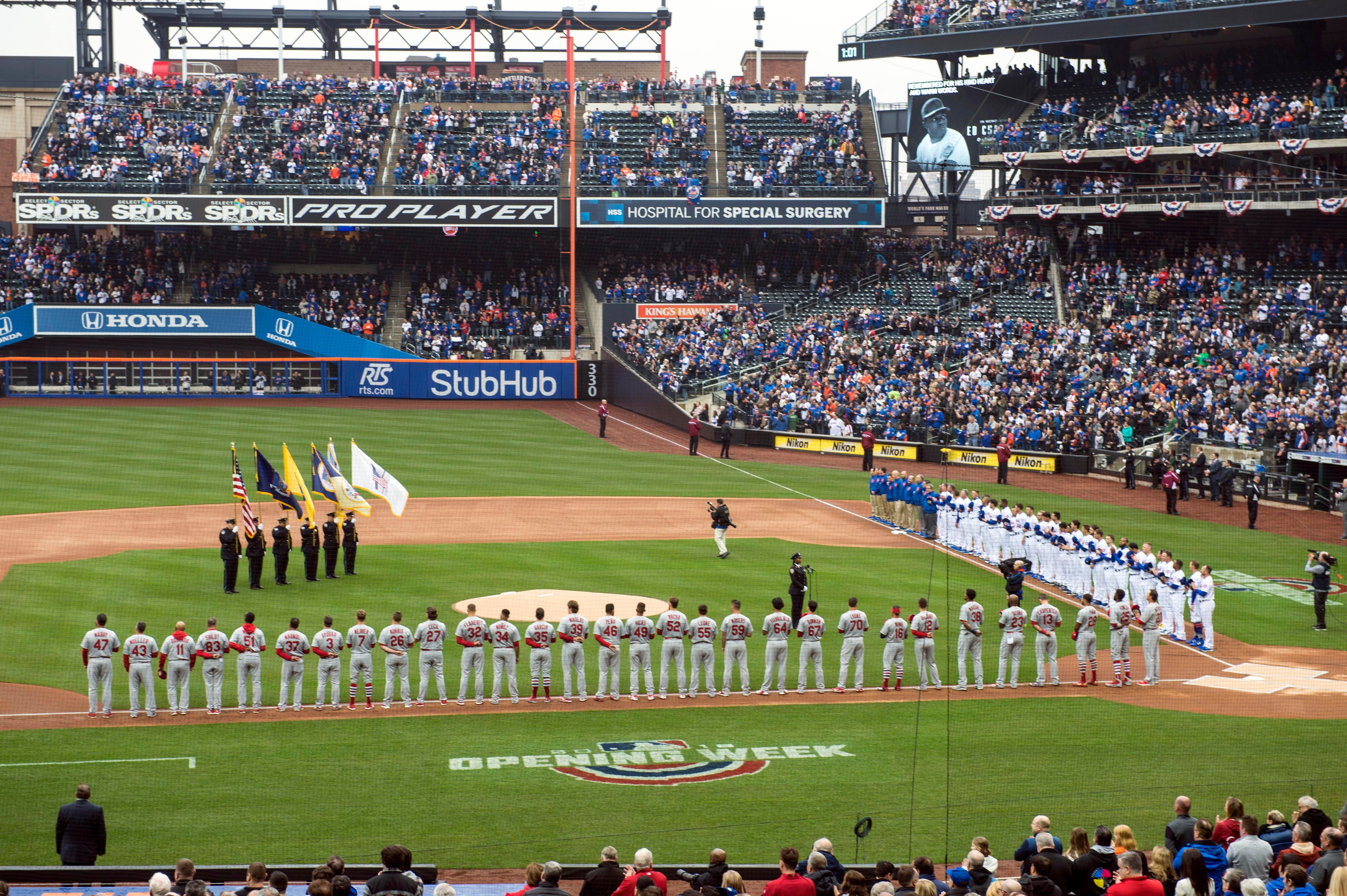 General view of the field for the National Anthem prior to the game on opening day at Citi Field. Mandatory Credit: Gregory J. Fisher-USA TODAY Sports / Gregory Fisher