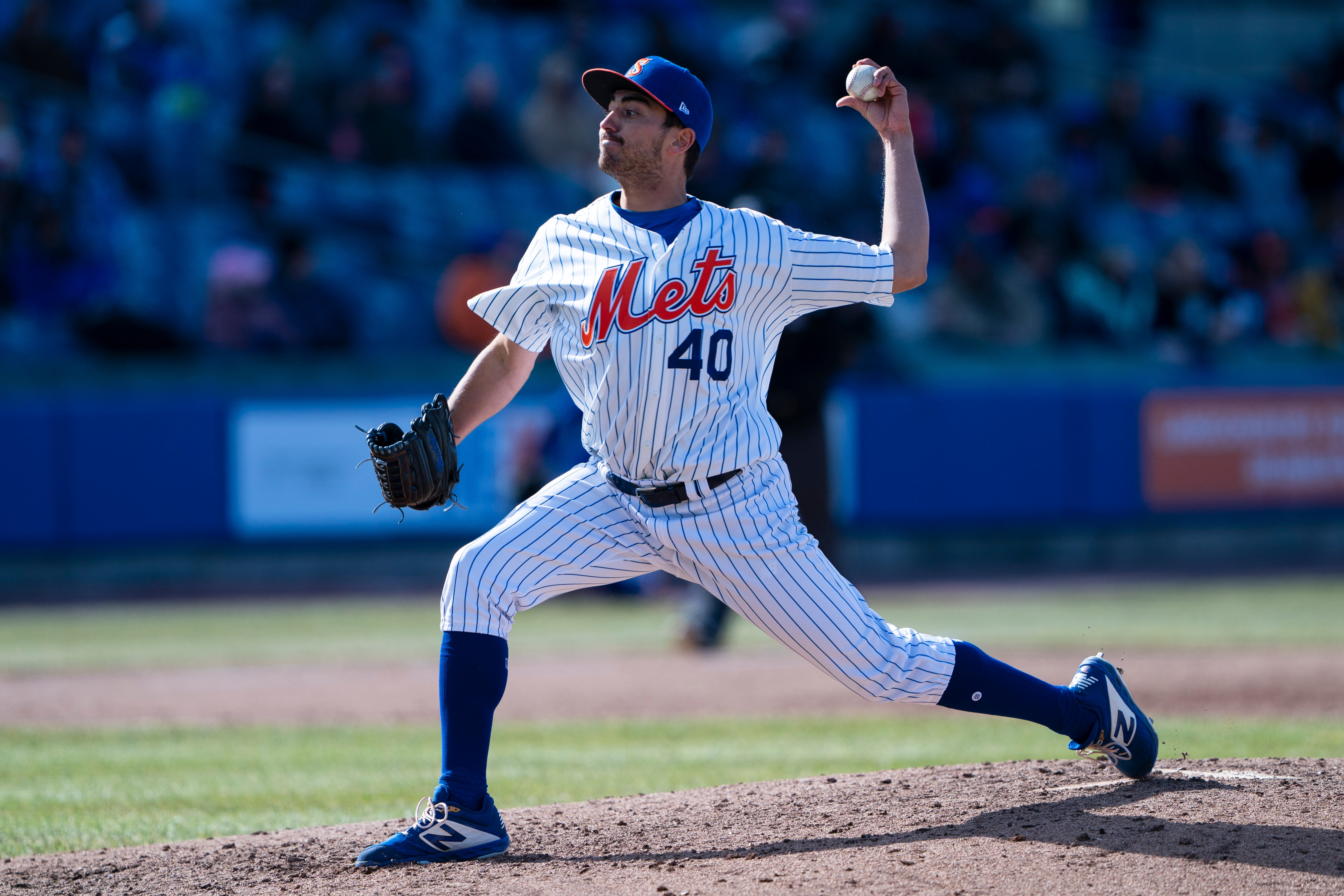 Apr 4, 2019; Syracuse, NY, USA; Syracuse Mets pitcher Daniel Zamora (40) delivers a pitch against the Pawtucket Red Sox during the eighth inning at NBT Bank Stadium. Mandatory Credit: Gregory J. Fisher-USA TODAY Sports / Gregory Fisher