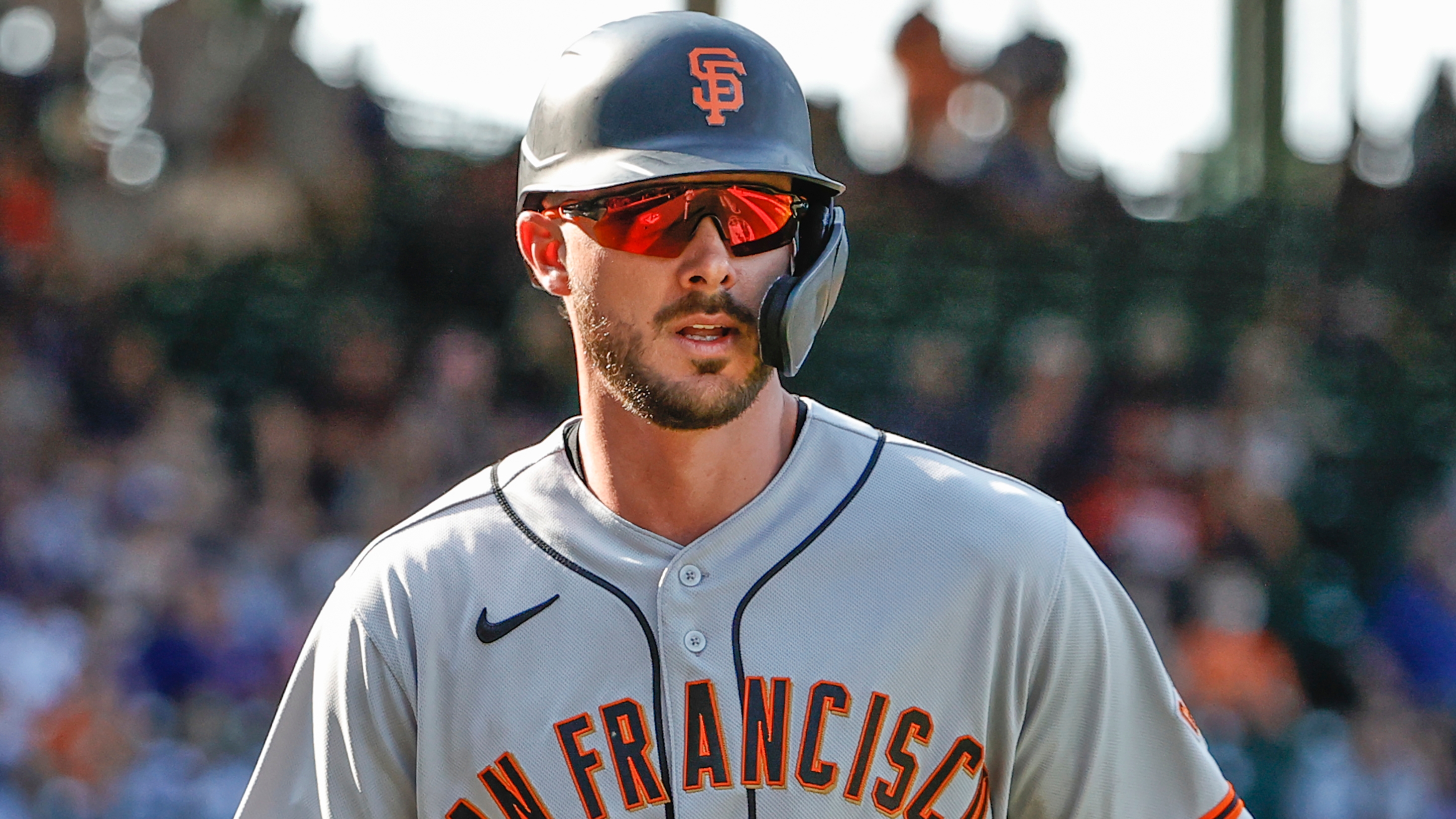 San Francisco Giants third baseman Kris Bryant (23) reacts after scoring against the Chicago Cubs during the eighth inning at Wrigley Field. / Kamil Krzaczynski - USA TODAY Sports