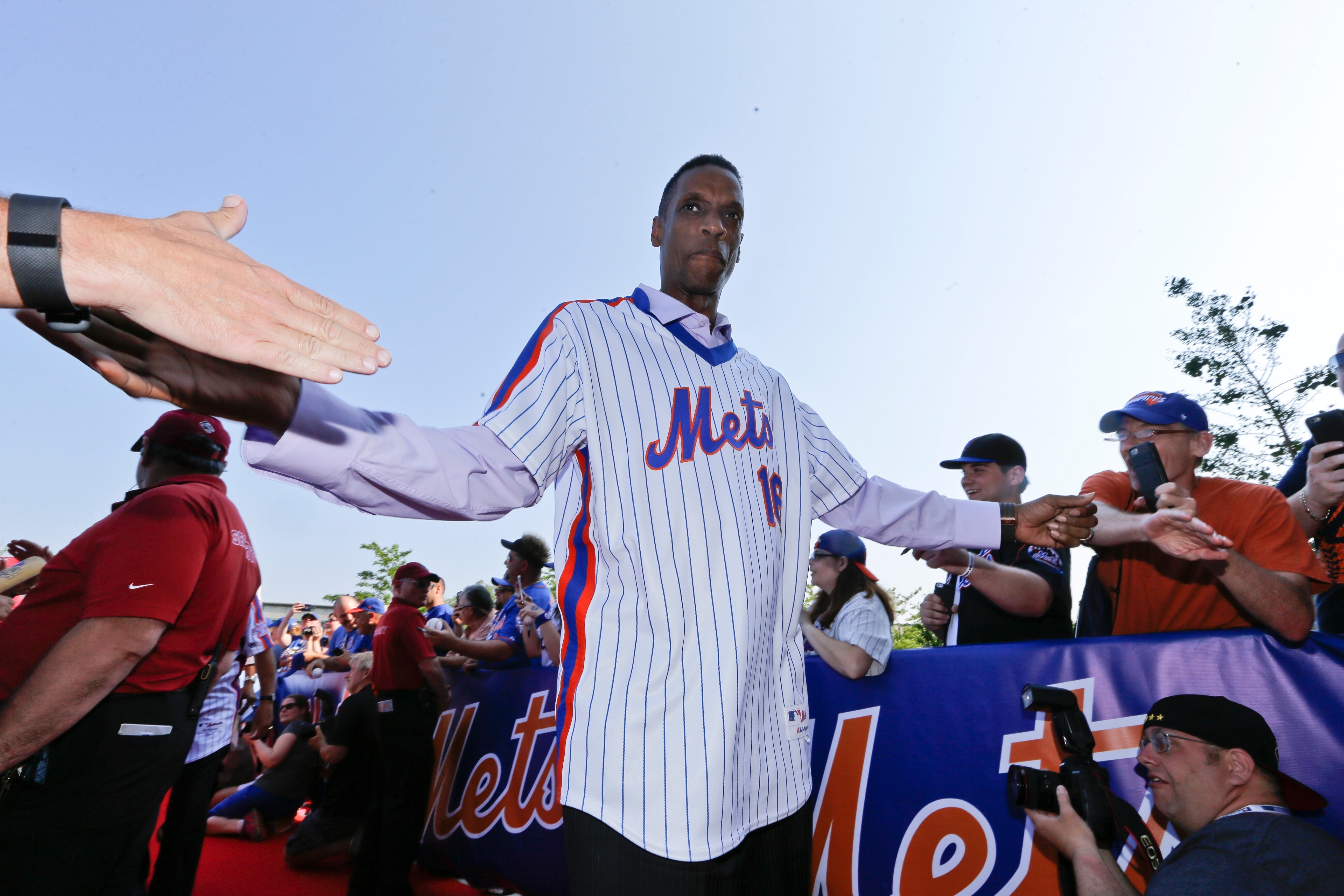 Former New York Mets player Dwight Gooden greets fans before a baseball game between the Los Angeles Dodgers and the New York Mets Saturday, May 28, 2016, in New York. (AP Photo/Frank Franklin II) / Frank Franklin II/AP
