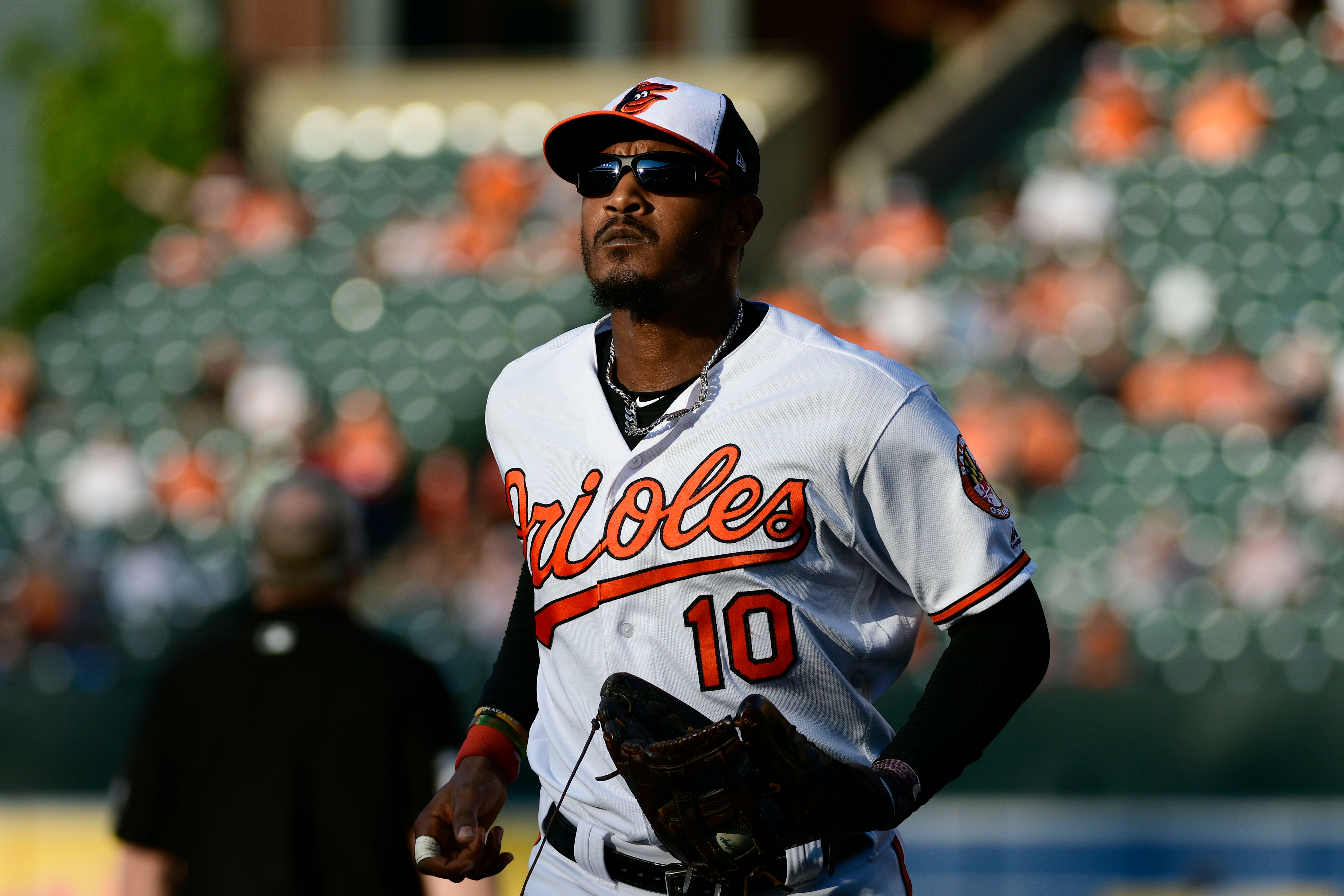 Sep 30, 2018; Baltimore, MD, USA; Baltimore Orioles right fielder Adam Jones (10) runs off the field during the eighth inning against the Houston Astros at Oriole Park at Camden Yards. Mandatory Credit: Tommy Gilligan-USA TODAY Sports / Tommy Gilligan