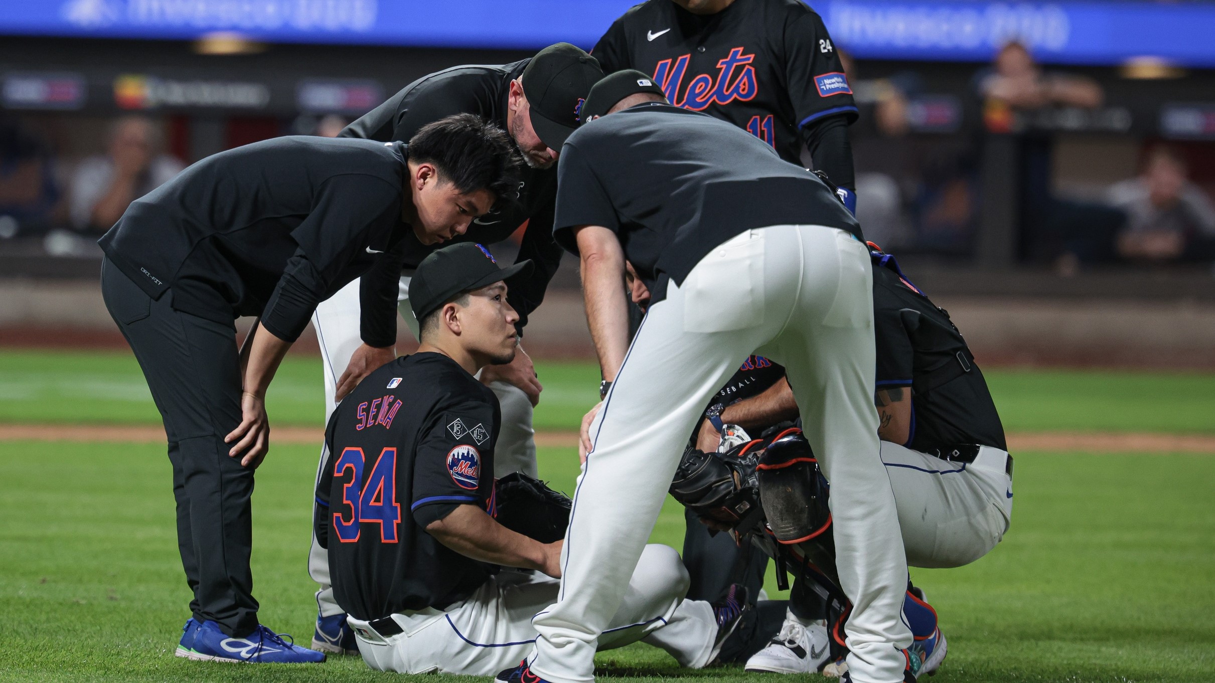 Mets' Kodai Senga exits season debut with calf injury; MRI set for SaturdaySenga struck out nine batters in 5.1 innings of work7/27/2024, 2:19 AMPhillip MartinezEditorial ProducerJul 26, 2024; New York City, New York, USA; New York Mets starting pitcher Kodai Senga (34) on the field after an injury during the fifth inning against the Atlanta Braves at Citi Field. / Vincent Carchietta-USA TODAY Sports