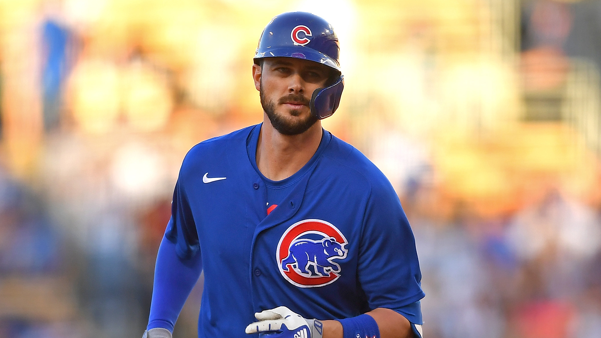 Jun 25, 2021; Los Angeles, California, USA; Chicago Cubs third baseman Kris Bryant (17) rounds the bases after hitting a solo home run in the first inning of the game against the Los Angeles Dodgers at Dodger Stadium. / Jayne Kamin-Oncea-USA TODAY Sports