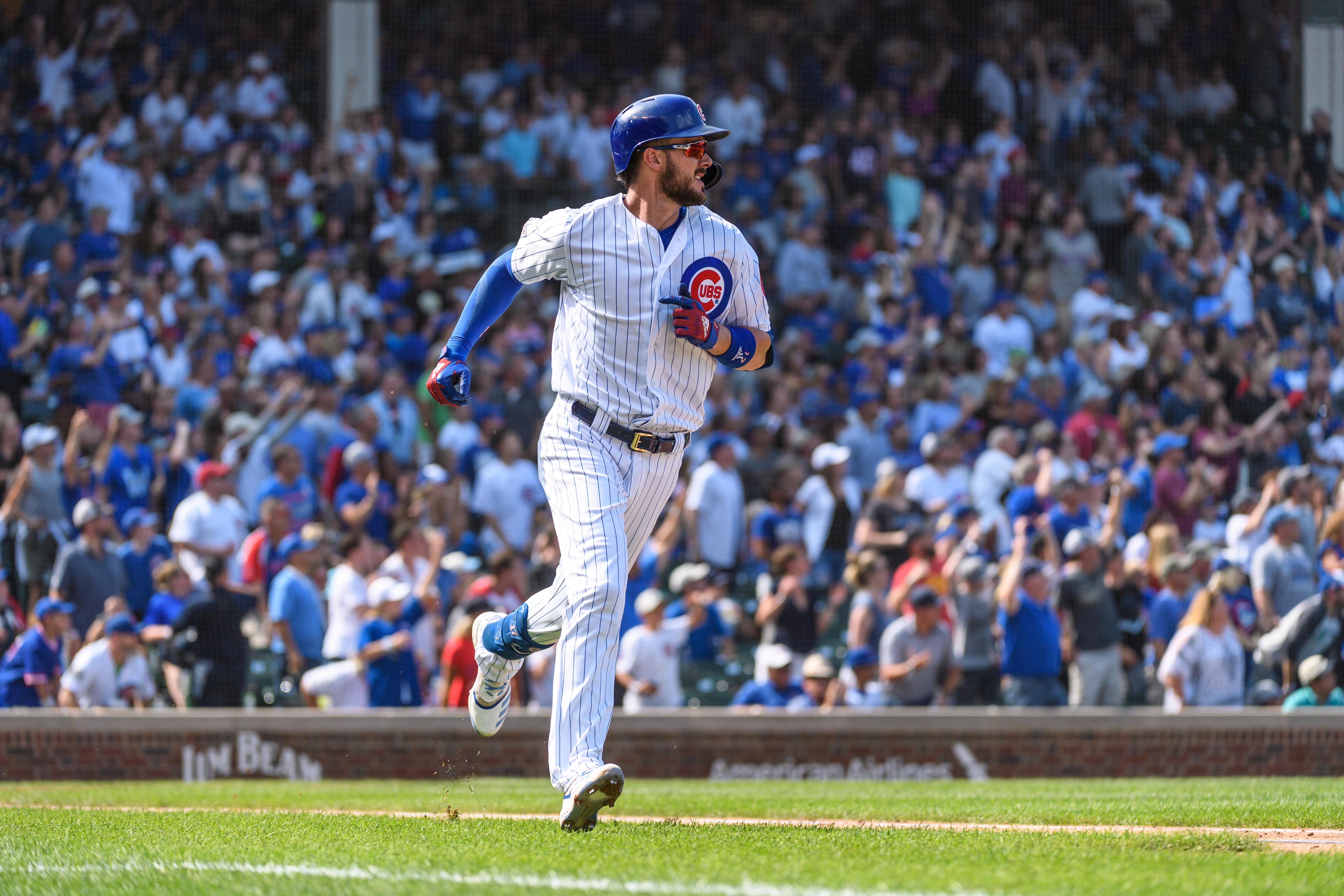 Sep 15, 2019; Chicago, IL, USA; Chicago Cubs third baseman Kris Bryant (17) rounds the bases after hitting a home run off Pittsburgh Pirates starting pitcher Trevor Williams (not pictured) during the third inning at Wrigley Field. Mandatory Credit: Daniel Bartel-USA TODAY Sports / Daniel Bartel
