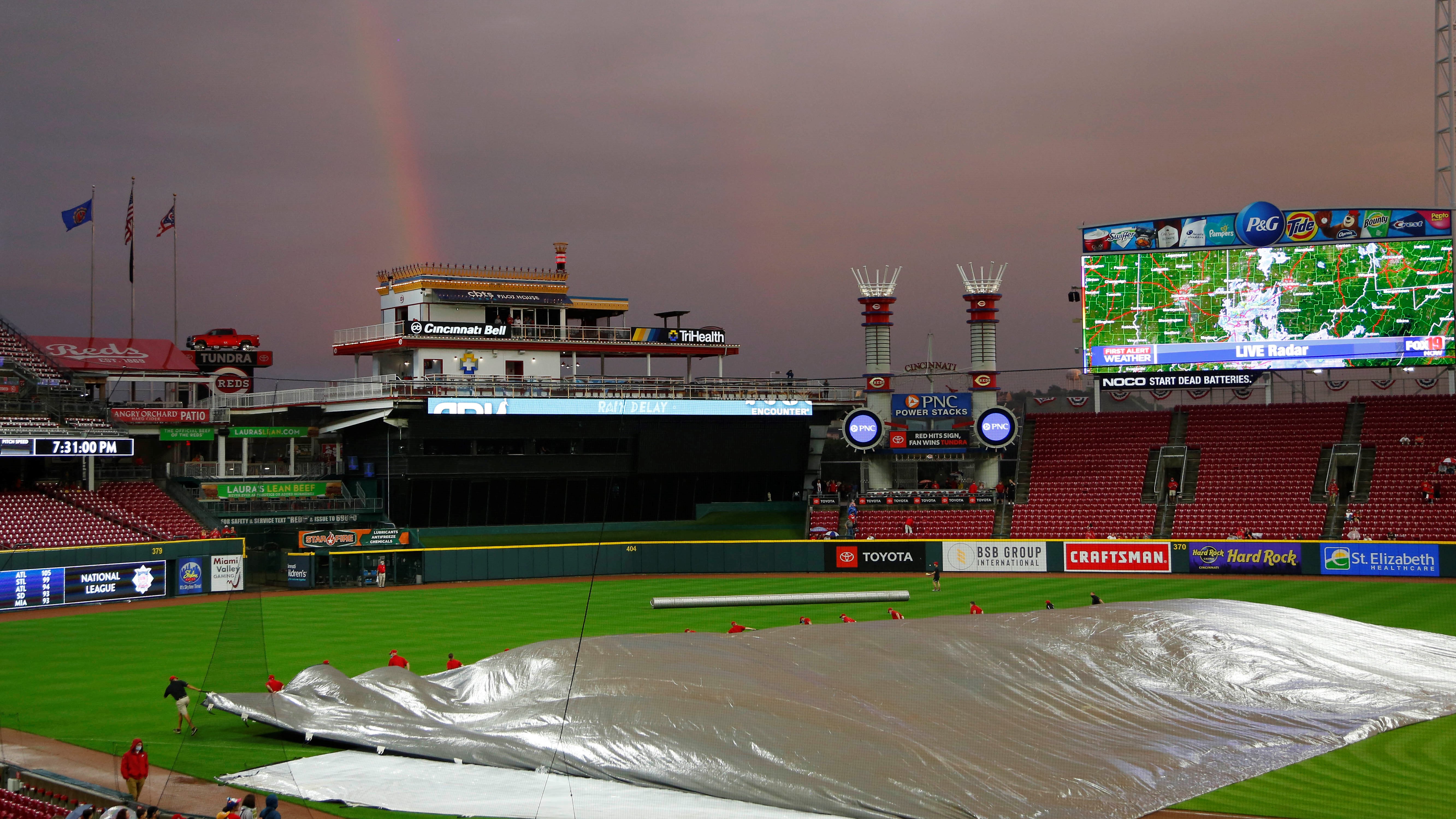 Start of Mets, Reds game delayed due to inclement weatherTuesday will mark the return of Max Scherzer7/5/2022, 10:27 PMPhillip MartinezEditorial ProducerSep 20, 2021; Cincinnati, Ohio, USA; Cincinnati Reds field crew members remove the cover after a rain delay before a game with the Pittsburgh Pirates and the Cincinnati Reds at Great American Ball Park. / David Kohl-USA TODAY Sports