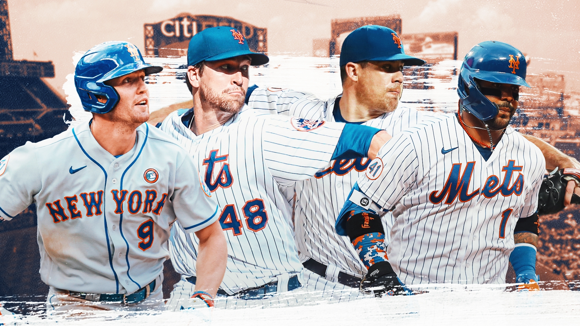 Brandon Nimmo, Jacob deGrom, Trevor May, and Jonathan Villar / USA TODAY Sports/SNY Treated Image