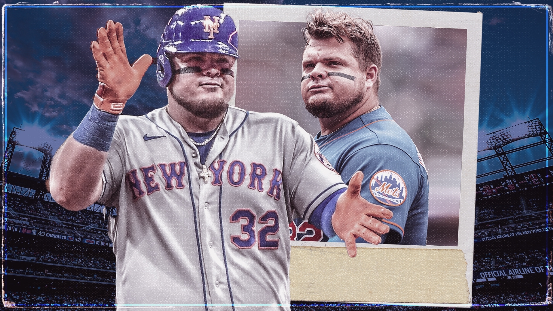 Aug 14, 2022; New York City, New York, USA; New York Mets designated hitter Daniel Vogelbach (32) watches his home run in the sixth inning against the Philadelphia Phillies at Citi Field. / Wendell Cruz-USA TODAY Sports