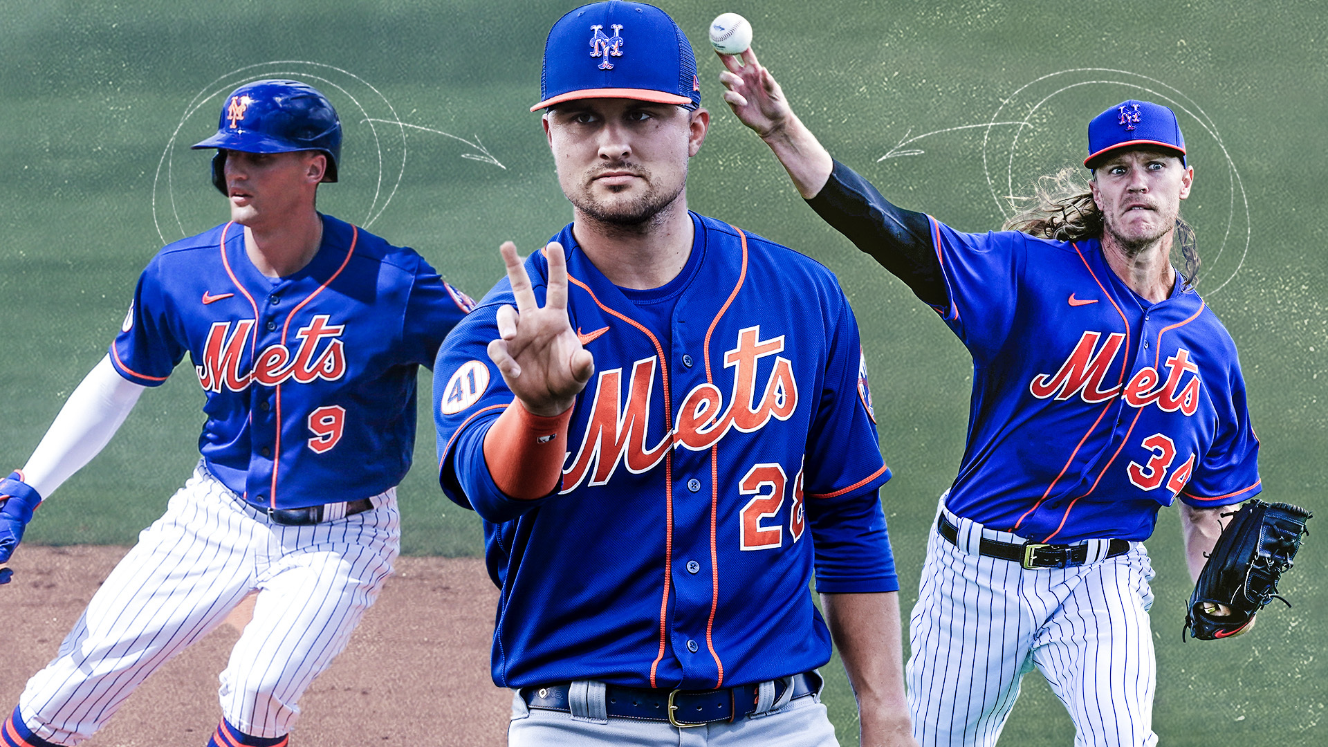 Brandon Nimmo, J.D. Davis and Noah Syndergaard. / USA TODAY Sports/SNY Treated Image