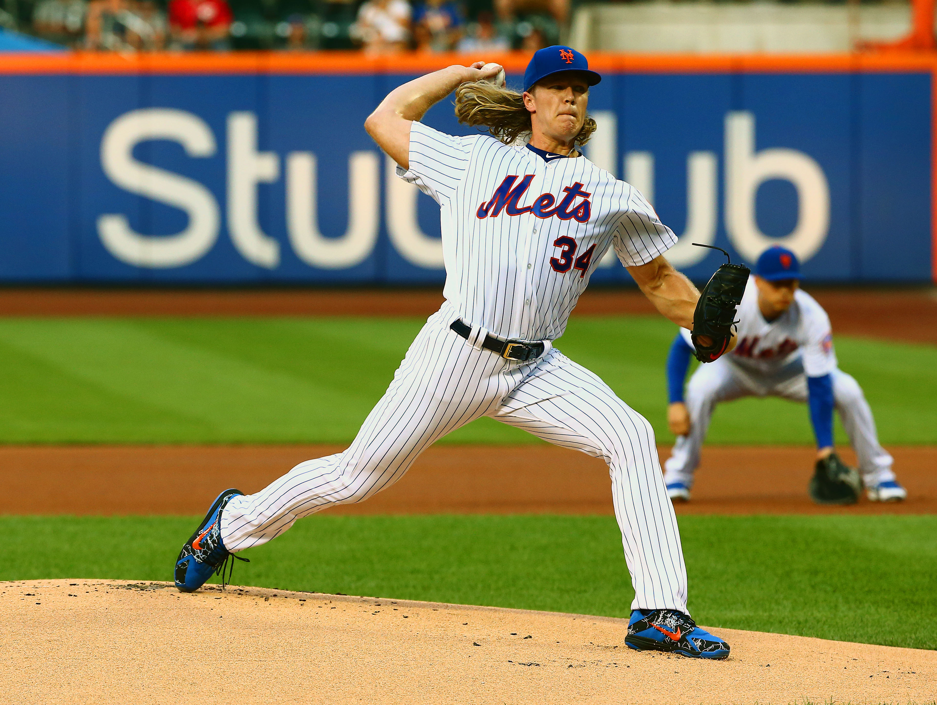 New York Mets starting pitcher Noah Syndergaard pitches against the Cincinnati Reds during the first inning at Citi Field. / Andy Marlin/USA TODAY Sports
