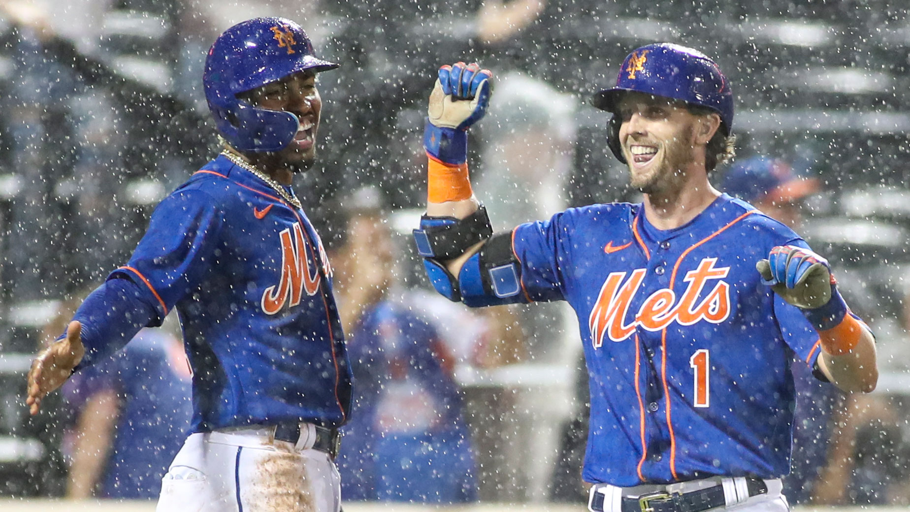 May 28, 2022; New York City, New York, USA; New York Mets left fielder Jeff McNeil (1) celebrates with shortstop Francisco Lindor (12) after hitting a three run home run against the Philadelphia Phillies in the fourth inning at Citi Field. / Wendell Cruz-USA TODAY Sports