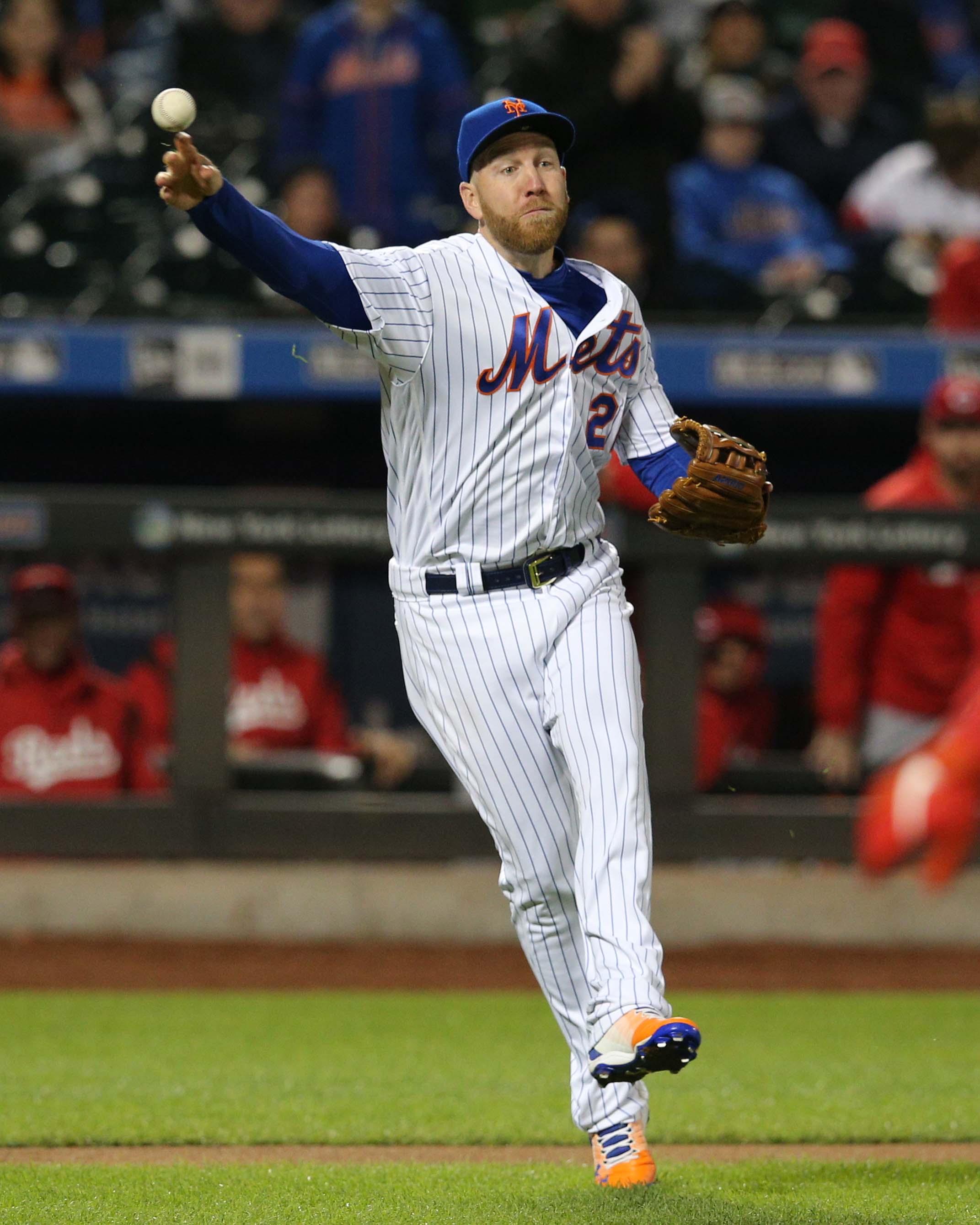 Apr 29, 2019; New York City, NY, USA; New York Mets third baseman Todd Frazier (21) throws out Cincinnati Reds catcher Tucker Barnhart (not pictured) during the eighth inning at Citi Field. Mandatory Credit: Brad Penner-USA TODAY Sports / Brad Penner