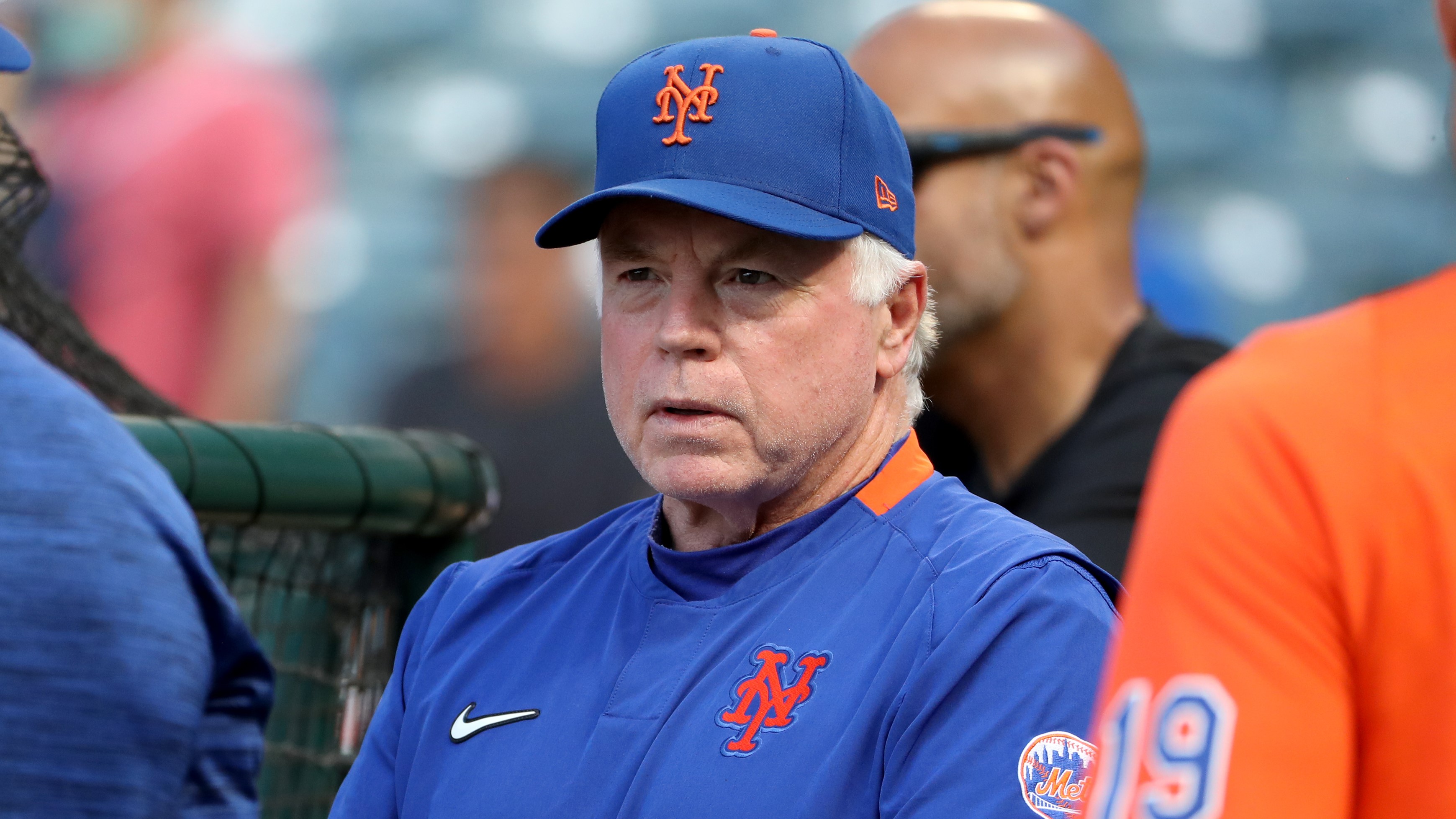 New York Mets manager Buck Showalter (11) following a pitching change against the Los Angeles Dodgers during the sixth inning at Dodger Stadium. / Gary A. Vasquez/USA TODAY
