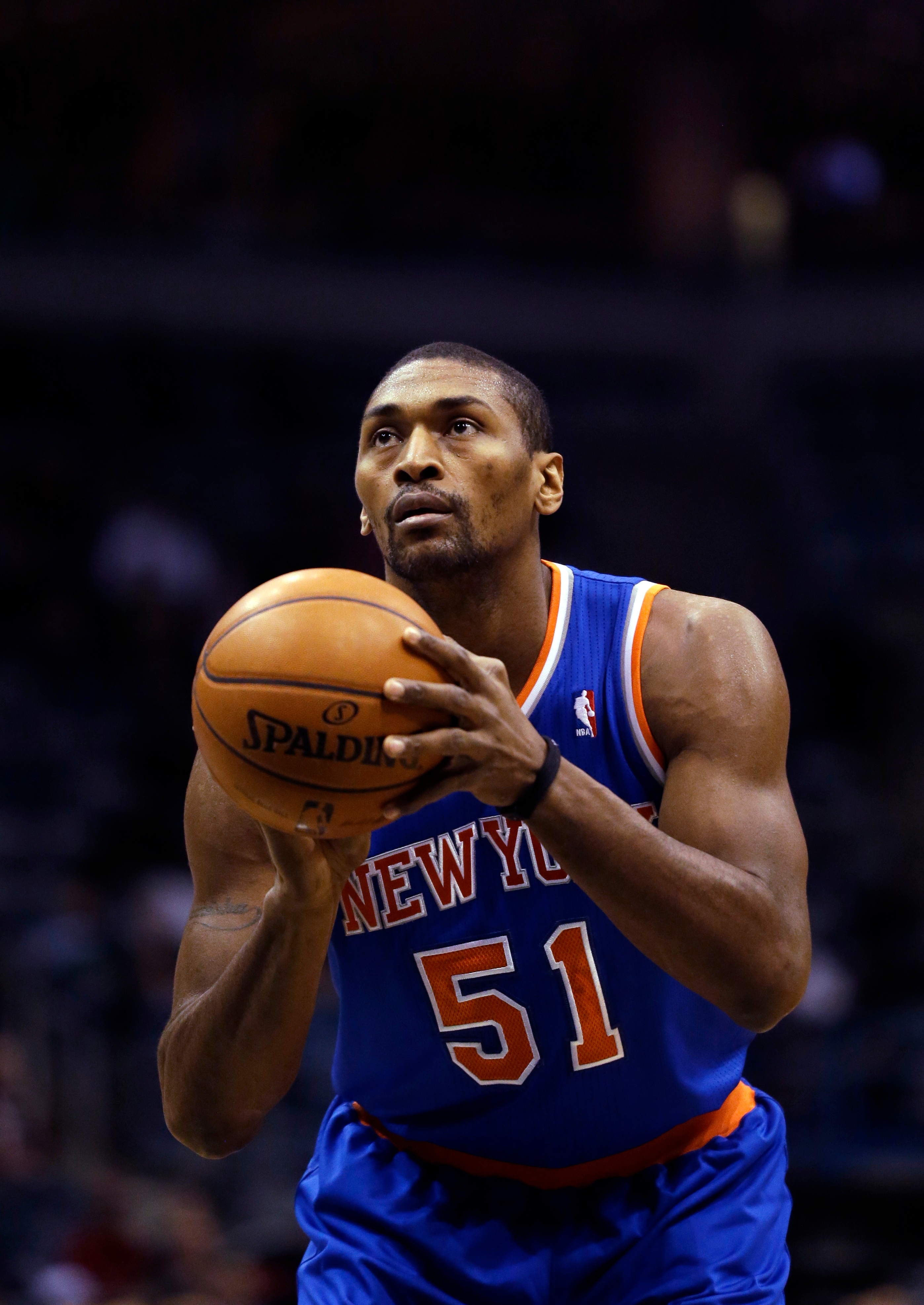 New York Knicks' Metta World Peace during the first half of an NBA basketball game against the Milwaukee Bucks Wednesday, Dec. 18, 2013, in Milwaukee. (AP Photo/Morry Gash) / Morry Gash/AP