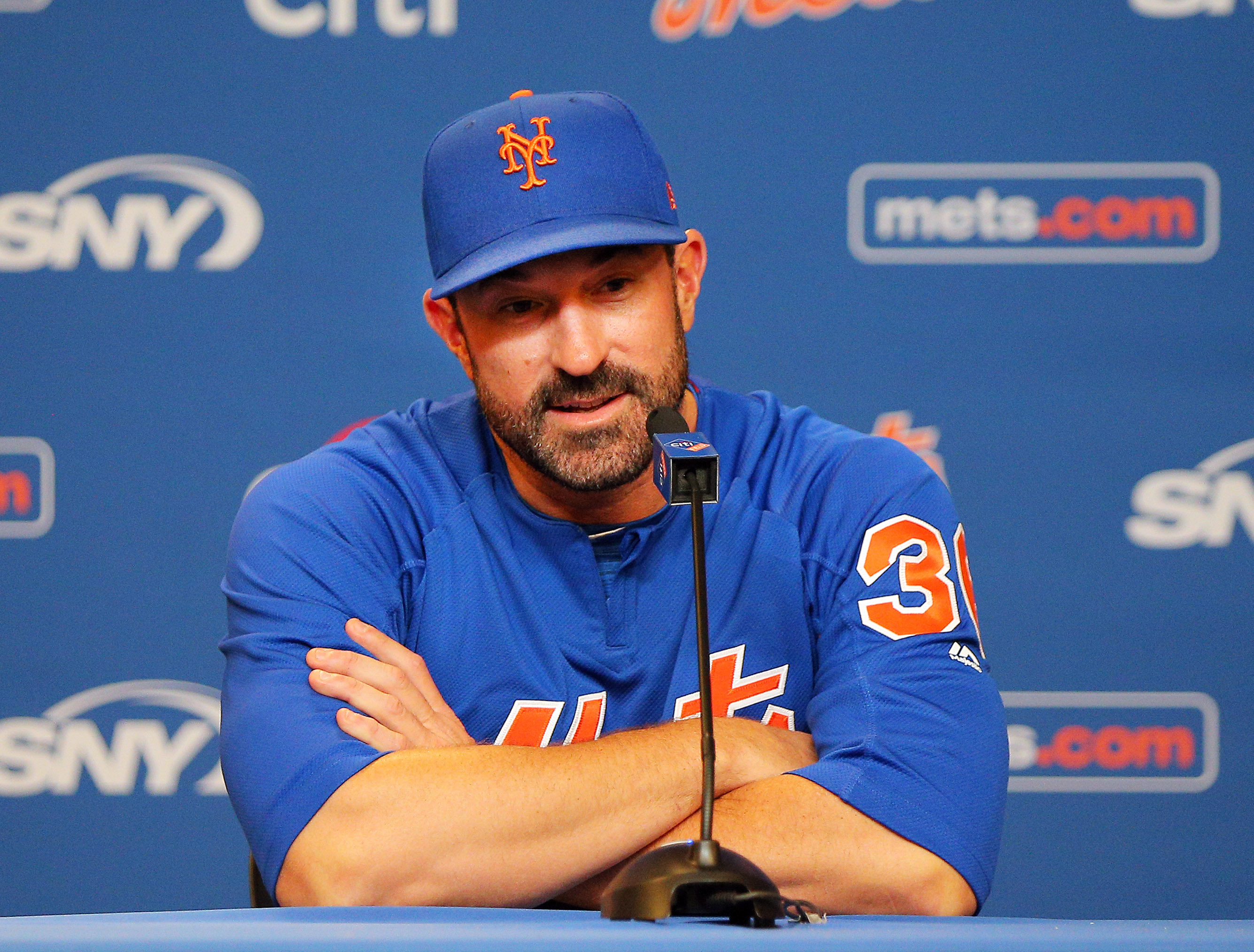 Apr 22, 2019; New York City, NY, USA; New York Mets manager Mickey Callaway addresses the media at a press conference prior to the game between the New York Mets and the Philadelphia Phillies at Citi Field. Mandatory Credit: Andy Marlin-USA TODAY Sports / Andy Marlin