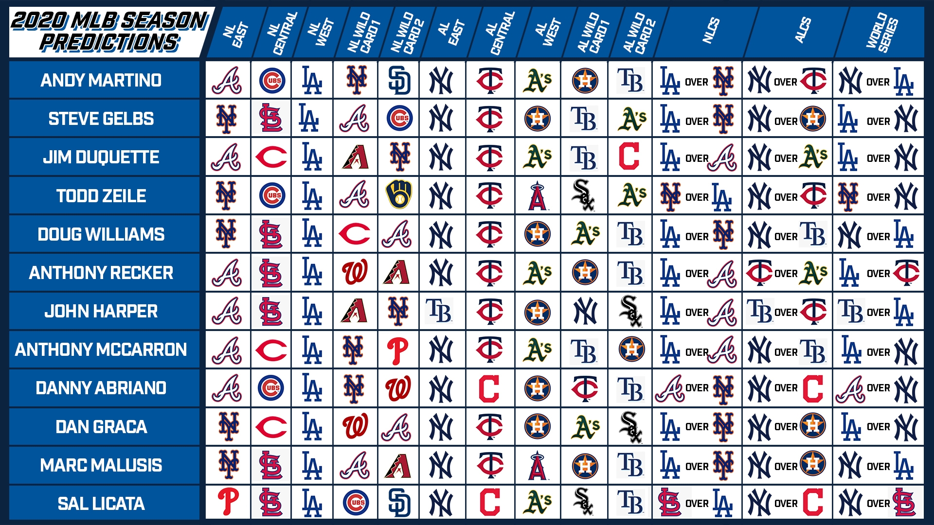 MLB predictions for 2020 playoff teams, World Series champs, Cy Young and moreWhat's in store for the Mets and Yankees? And who takes home the MVP hardware?7/23/2020, 1:55 PMDanny AbrianoManager of Editorial ProductionSNY staff predictions